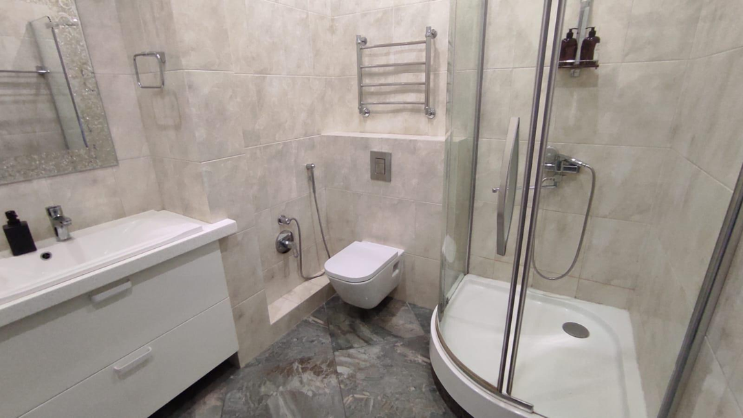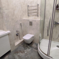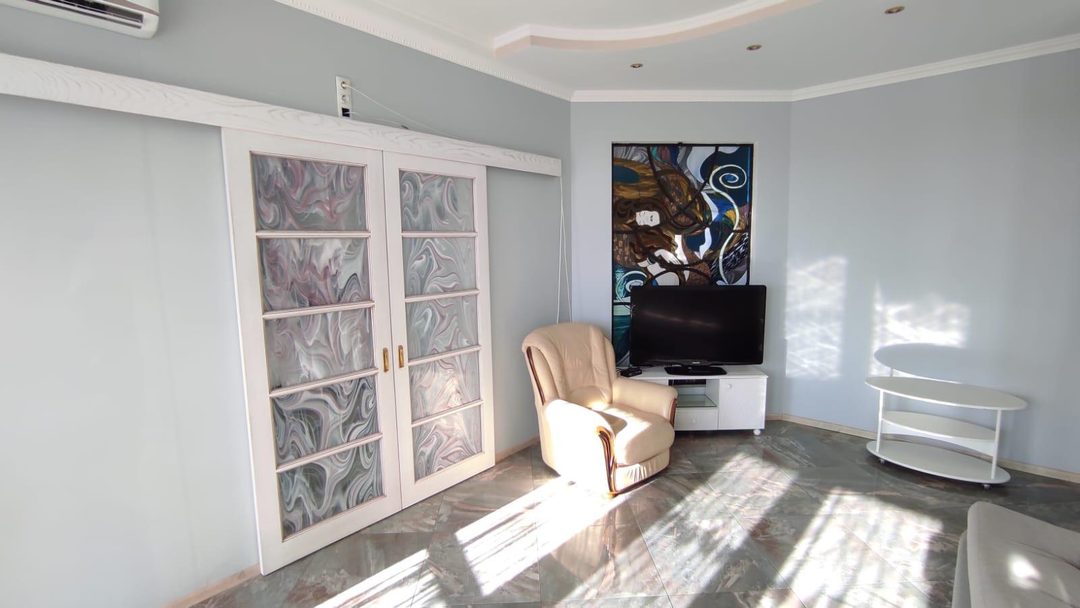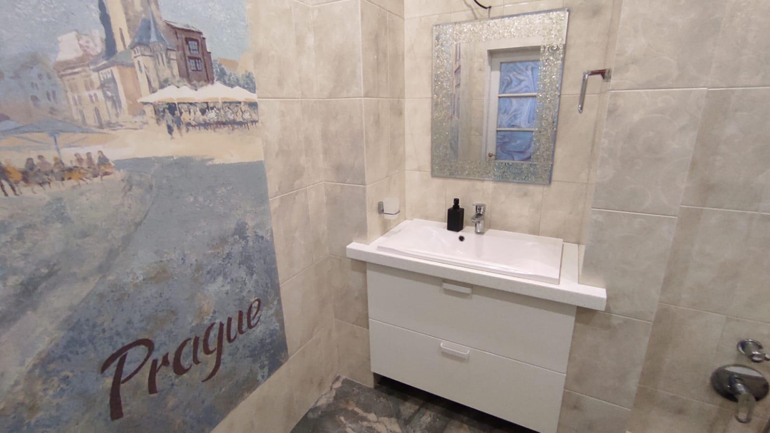 В квартире выполнен дорогостоящий дизайнерский ремонт с использовании европейский материалов производства Испания,Германия, Италия. На полах керамогранит