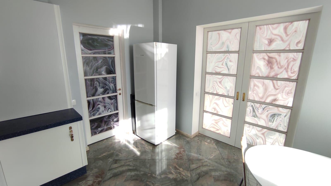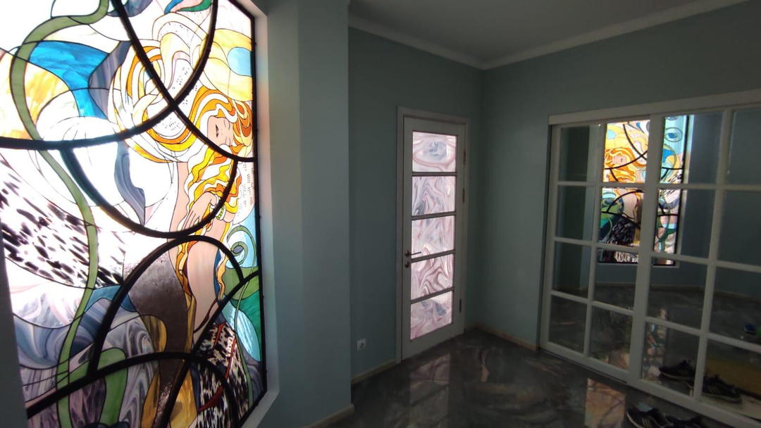 На стенах авторская роспись художника, а также ВИТРАЖ Тиффани из итальянского стекла ручной работы с картины Густава Климта "Русалки".