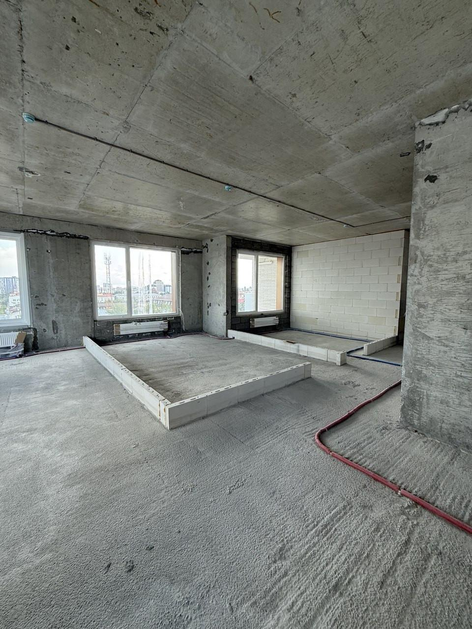Площадь: 87,1 м². Свободная планировка позволяет реализовать 3 полноценные комнаты и просторную кухню-гостиную.