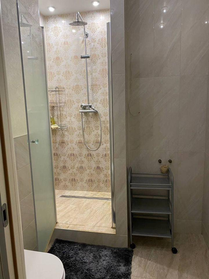 Санузел 2: душевая кабина, унитаз, место для хранения.