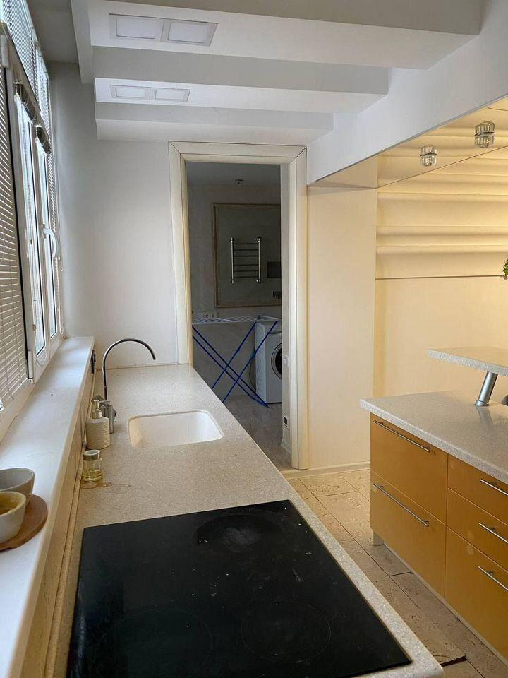Оснащение и интерьер:Кухня оборудована современной встроенной техникой:посудомоечная машина Bosch;двухкамерный холодильник Samsung;духовой шкаф;варочная панель;микроволновая печь.
