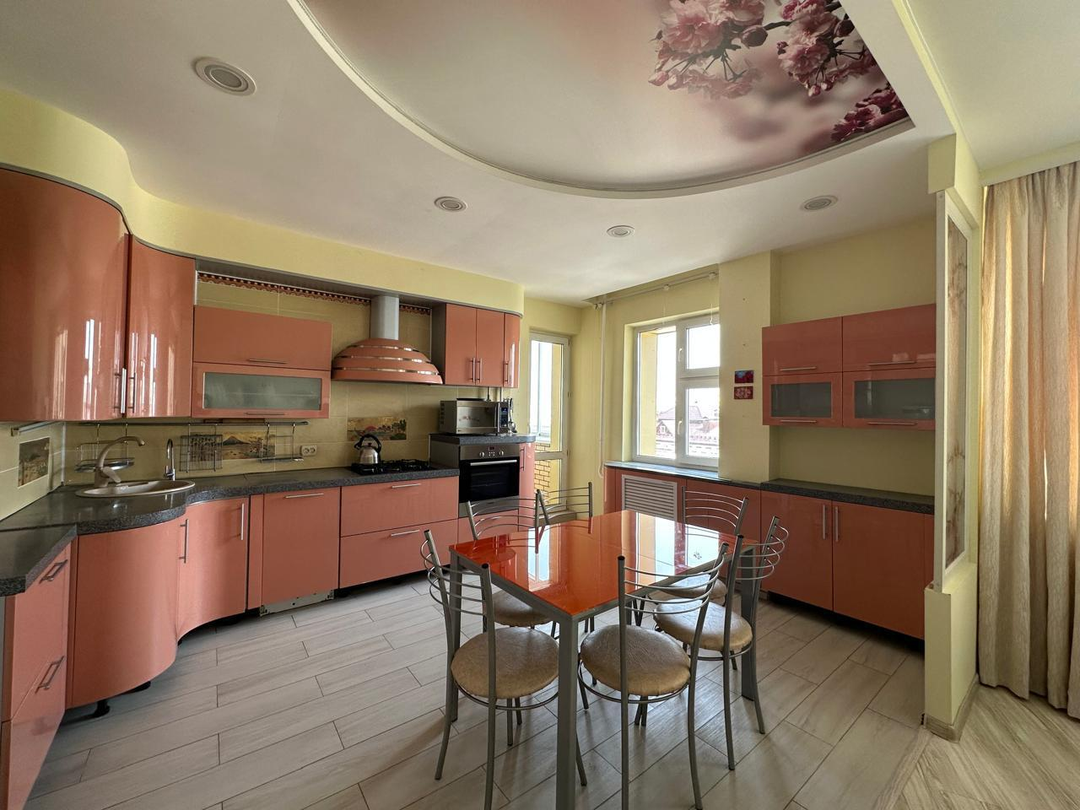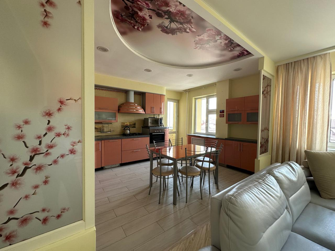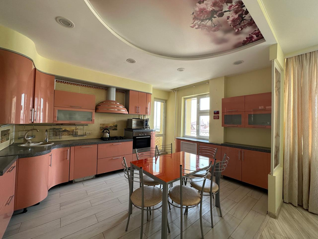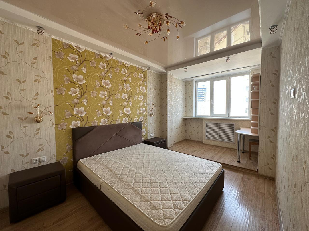 В квартире отличный современный ремонт, большая кухня - гостиная 35 кв.м., санузел совмещённый (душ). Окна выходят во двор и на улицу Горького, застекленная лоджия.