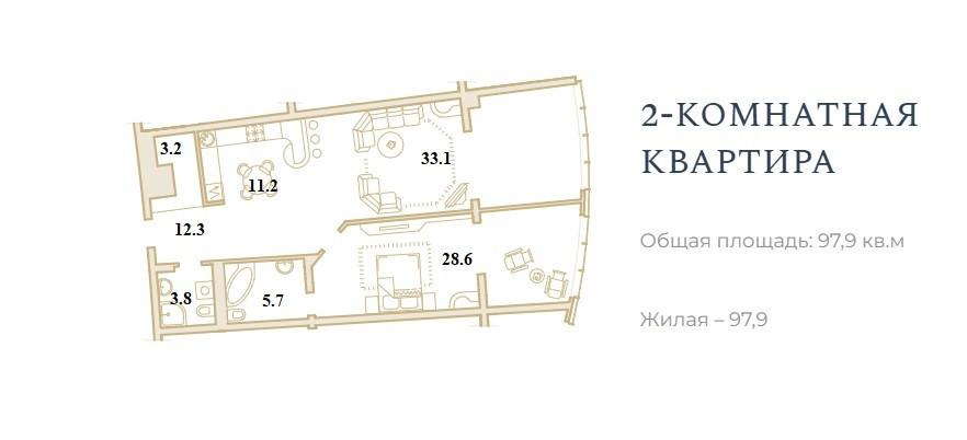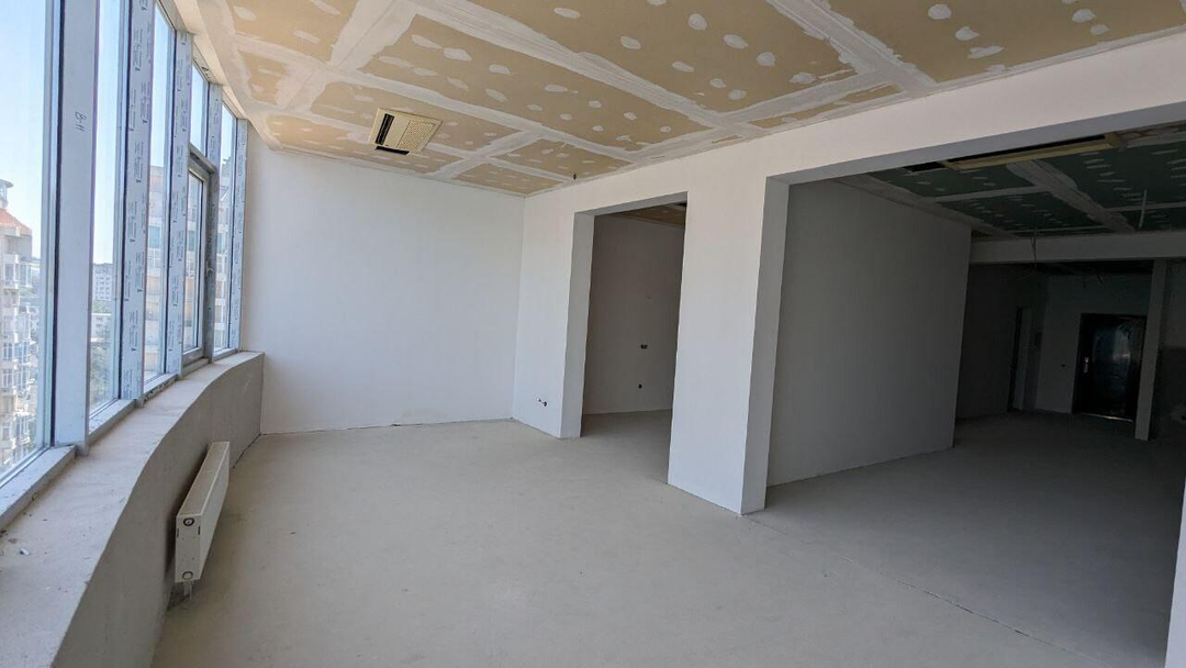 Все коммуникации и электрика подведены. Санузлы отделаны плиткой. Общая площадь квартиры 97,9 кв.м., 12 этаж. Объединенная кухня-гостиная 33.1 кв.м., комната 28.6 кв.м, 2 санузла 5,7 и 3.8 кв.м, гардеробная 3.2. В доме центральная система кондиционирования.