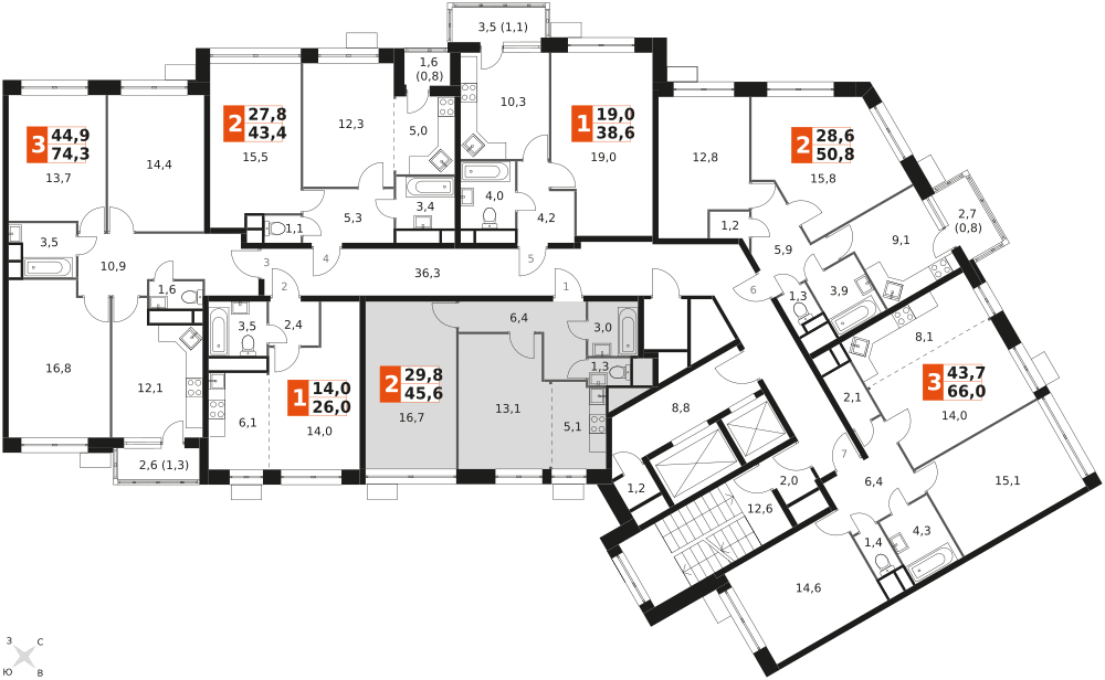 2-к. квартира, 45 м²