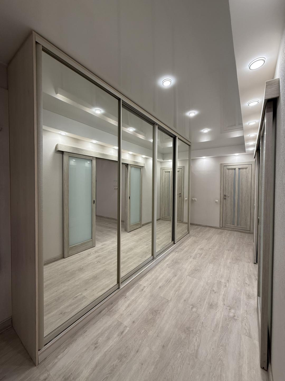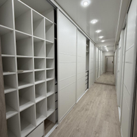 Гардеробная площадью 10,4 кв. м. со встроенными шкафами различной вместительности.