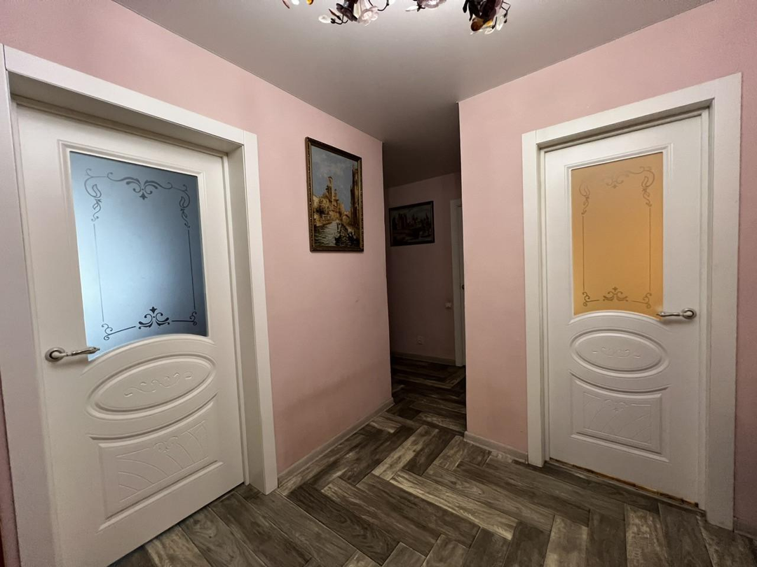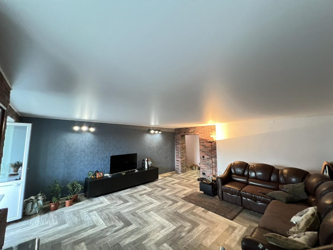 В квартире выполнен ремонт:Окна ПВХНапольное покрытие- ламинат ; столовая-линолеум, зона кухни-кафель, Ванная комната- кафельная плитка (пол), с/у совмещенный обшит пластиковыми панелямиНатяжные полотки по всему периметру квартирыЗастекленная двойная лоджия