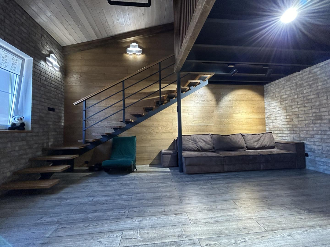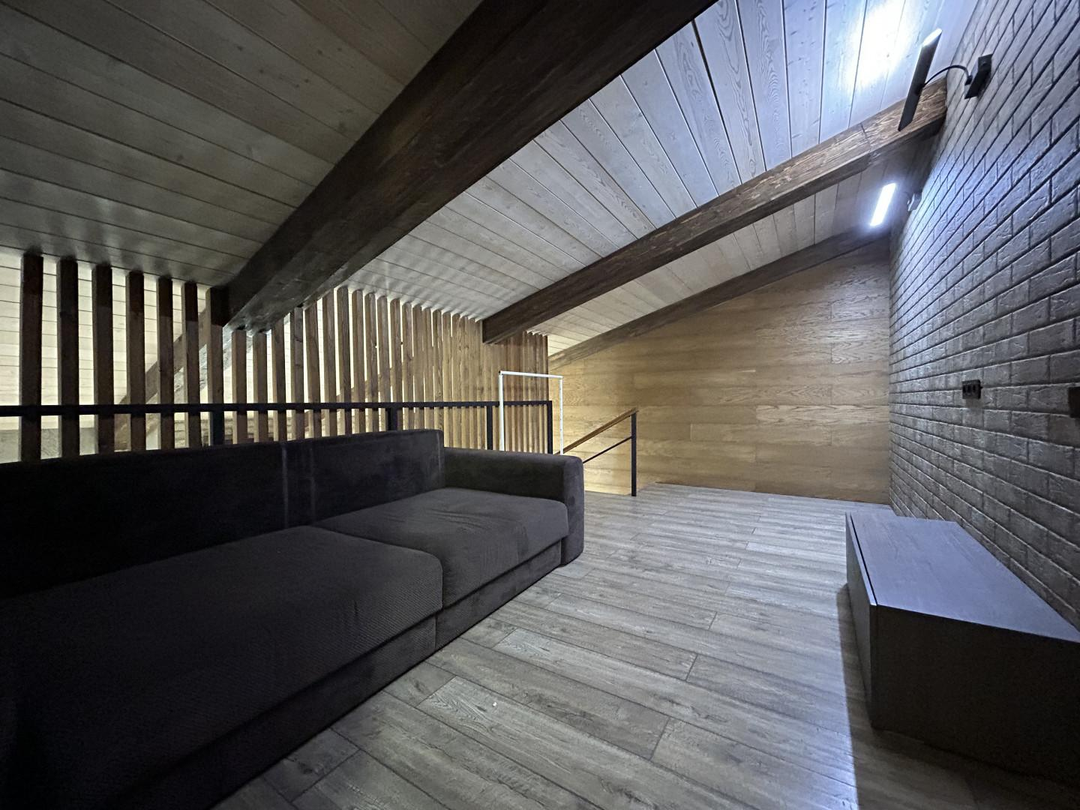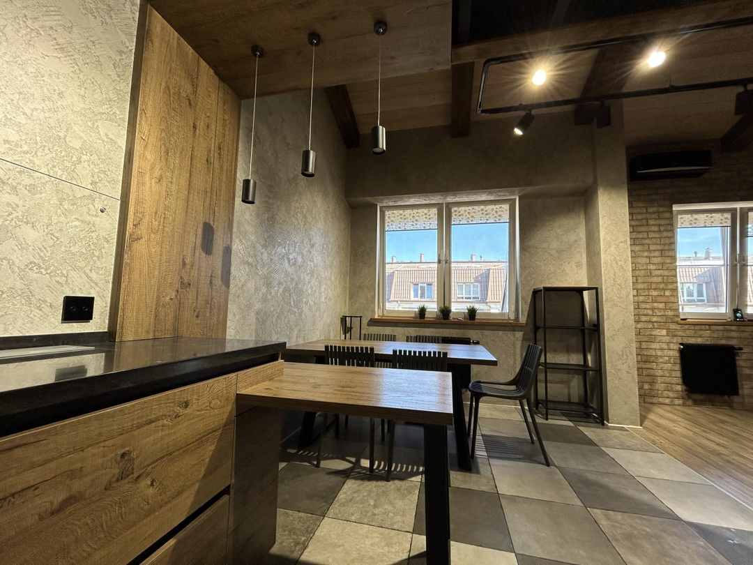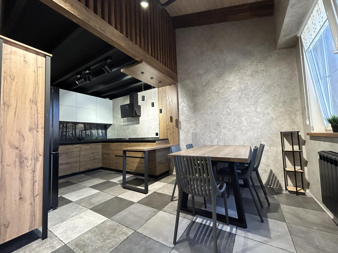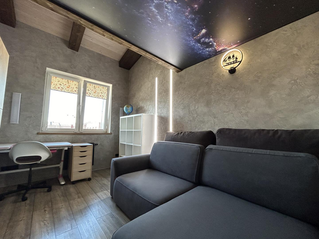 В квартире выполнен дизайнерский ремонт с использованием дорогих премиальных материалов: заменена система отопления на профиль Rehau и стеклопакеты Rehau, проведена качественная электрика ABS, на полу использован ламинат (Бельгия) и плитка (Испания). Отделка стен и подоконников выполнена из шпонированного дуба. Установлена удобная и безопасная лестница с собственной подсветкой и ступенями из дуба. В квартире сделаны сенсорные выключатели с несколькими уровнями света, в том числе проходные выключатели.