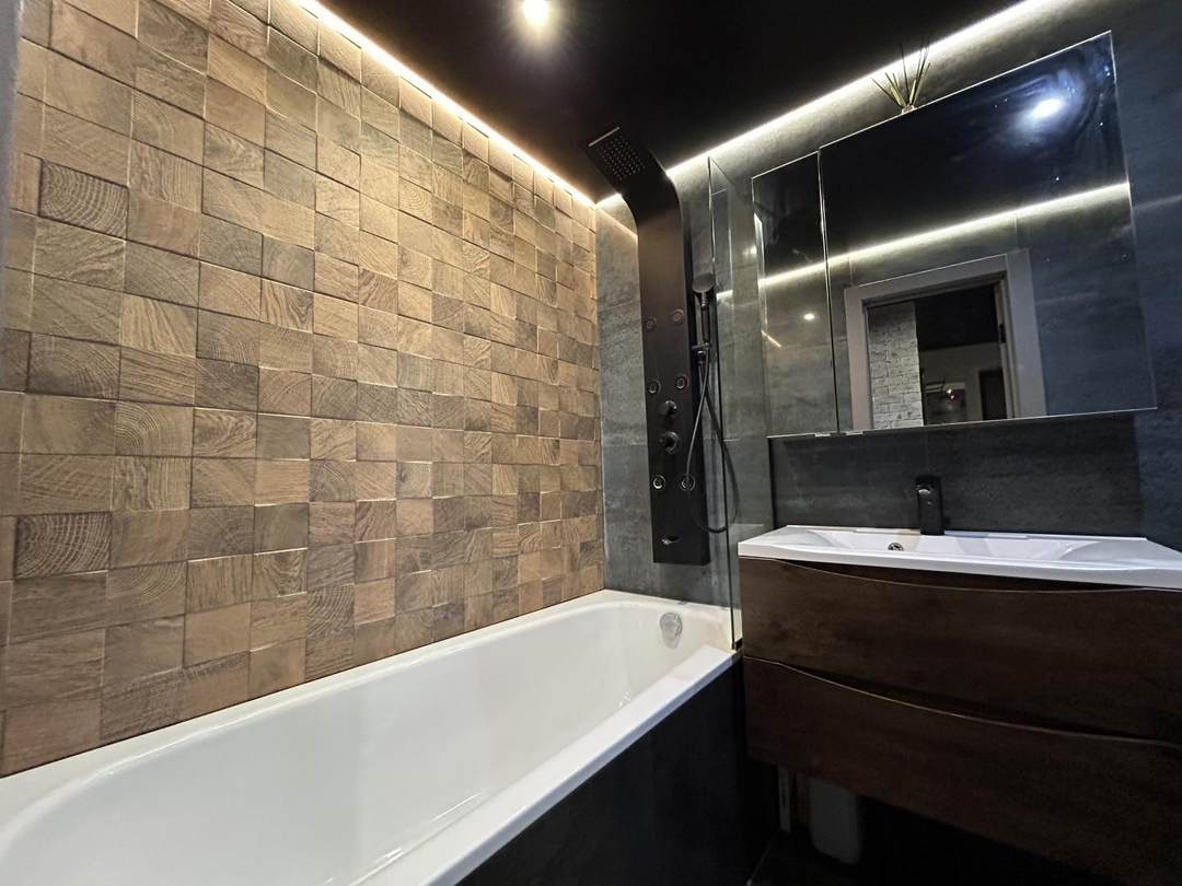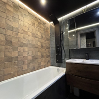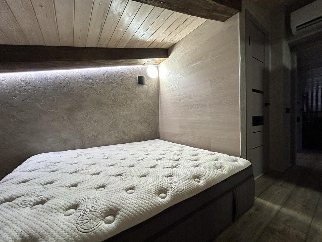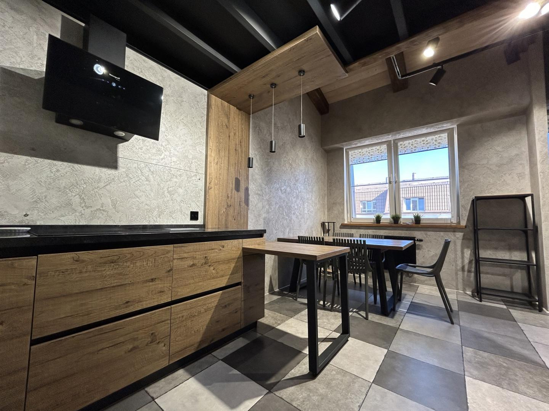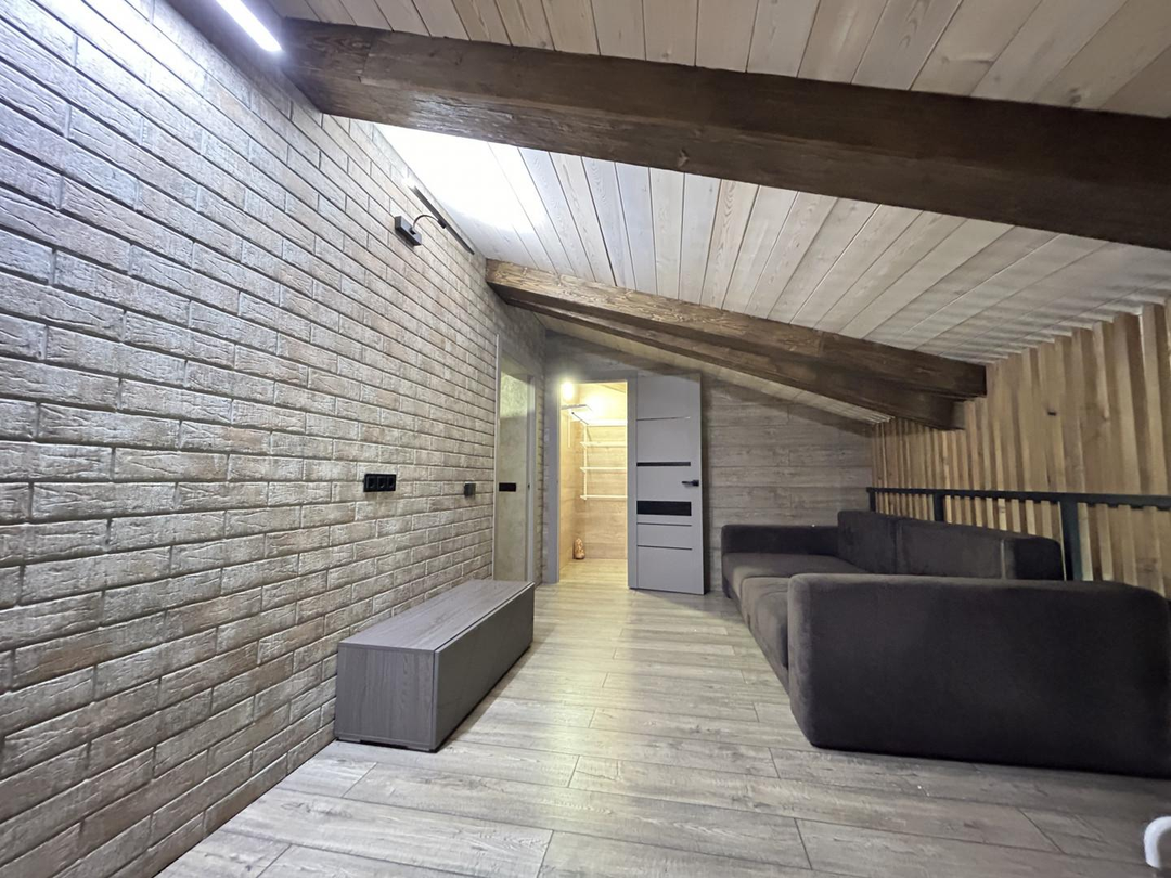 В квартире выполнен дизайнерский ремонт с использованием дорогих премиальных материалов: заменена система отопления на профиль Rehau и стеклопакеты Rehau, проведена качественная электрика ABS, на полу использован ламинат (Бельгия) и плитка (Испания). Отделка стен и подоконников выполнена из шпонированного дуба. Установлена удобная и безопасная лестница с собственной подсветкой и ступенями из дуба. В квартире сделаны сенсорные выключатели с несколькими уровнями света, в том числе проходные выключатели.