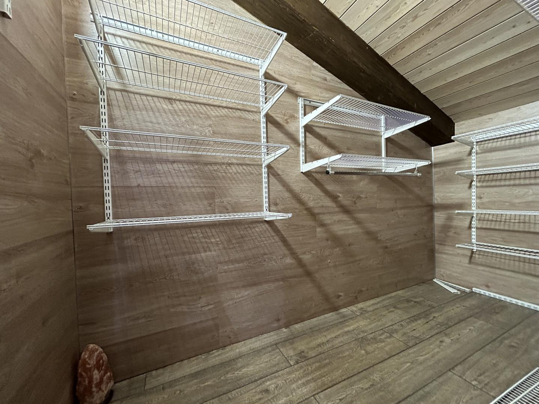 Общая площадь квартиры 91,5 кв. метров. На первом уровне квартиры расположена светлая детская комната, санузел, просторная кухня и гостиная. На втором уровне находится уютная спальня, санузел, две вместительные гардеробные и просторная зона отдыха.