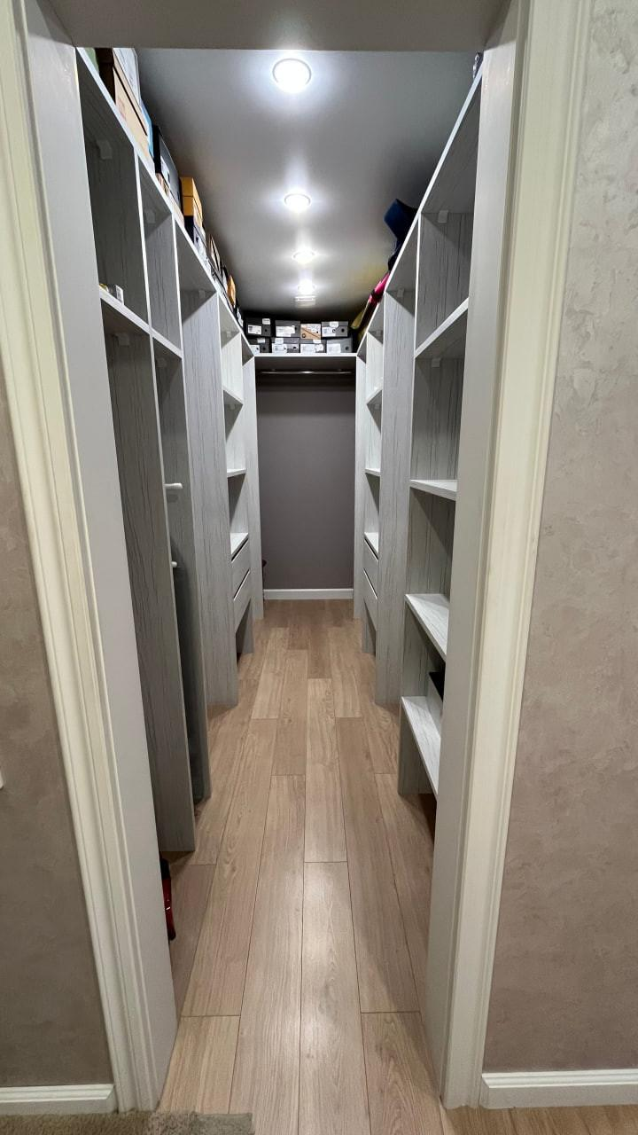 - гардеробная - 7 м2, шкафы в комнатах для хранения сезонной и повседневной одежды и обуви