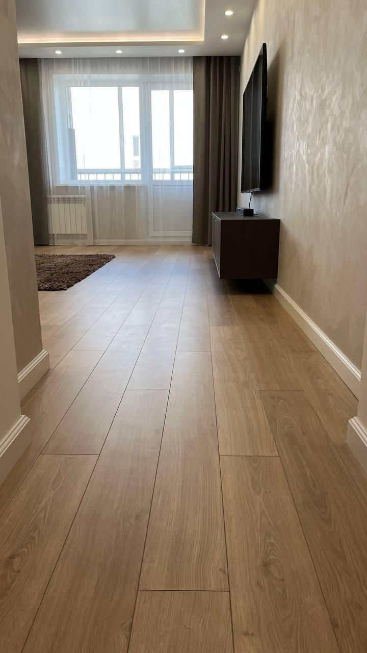 - ламинат 33 класса уложен палубной укладкой единым контуром без соеденительных швов и порожков