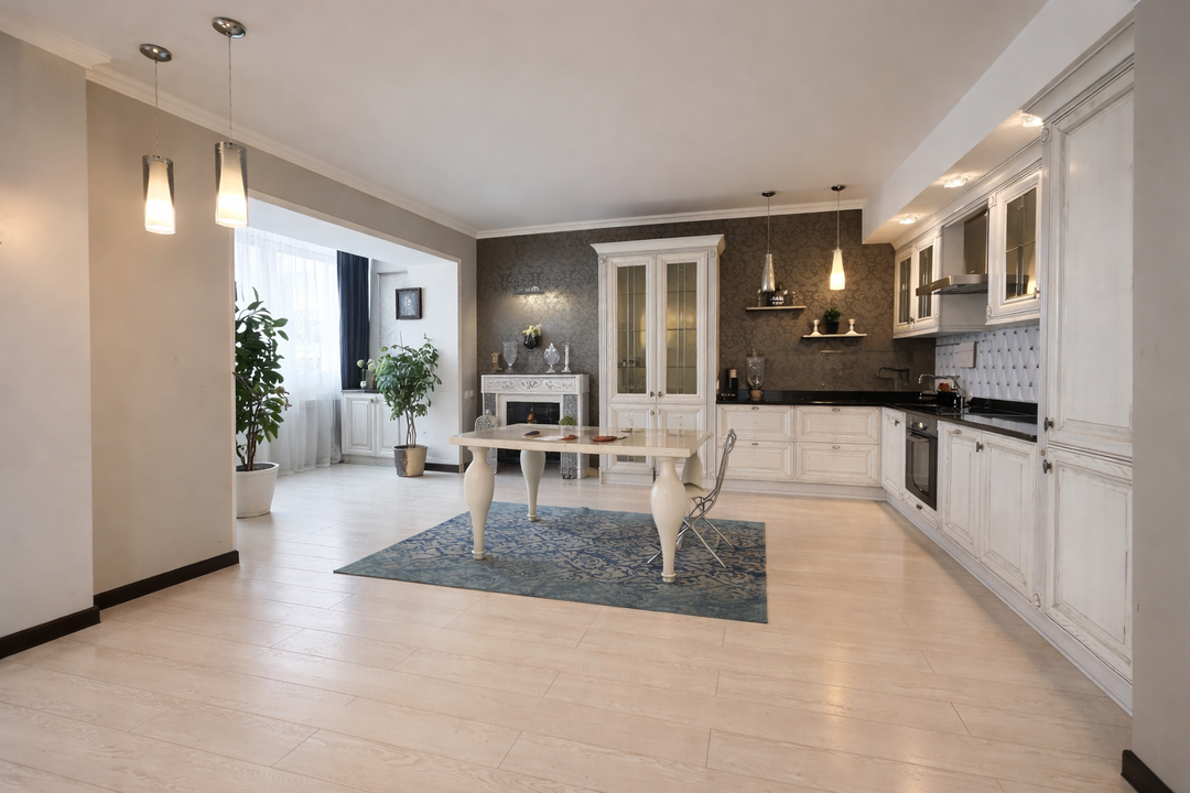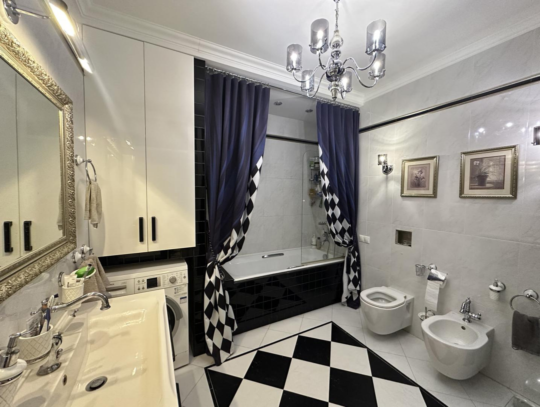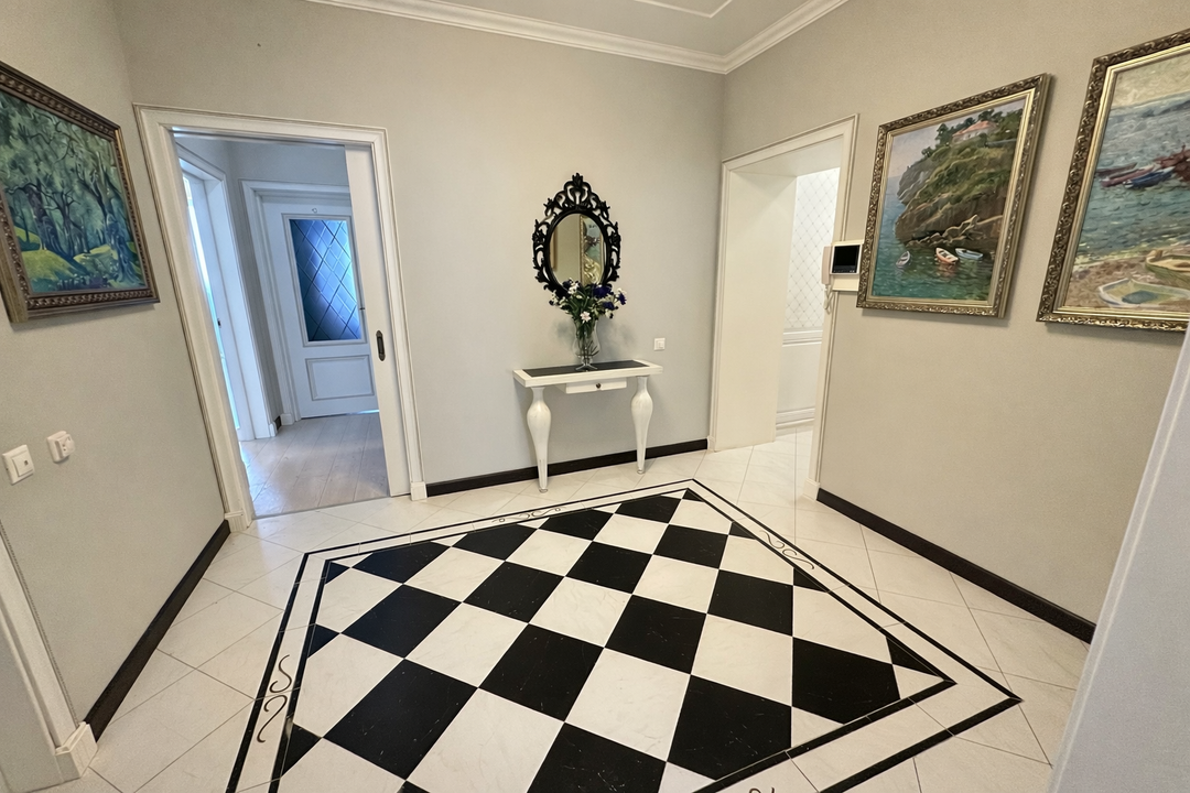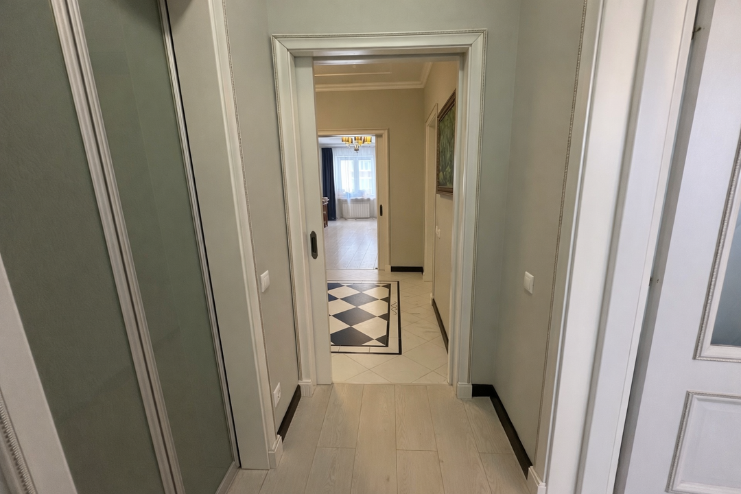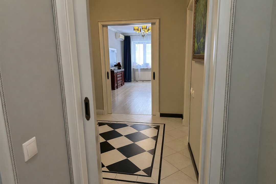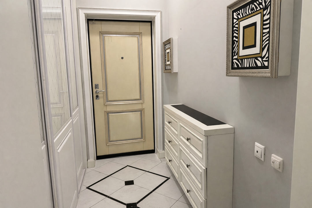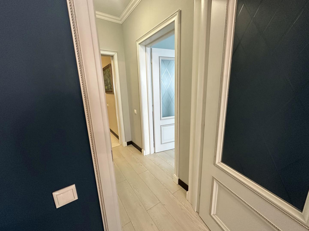 Интерьер квартиры выполнен в едином классическом стиле. Качественный ремонт, продуманные детали и гармоничные цветовые решения создают атмосферу солидности, уюта и эстетики, которая остаётся актуальной вне времени.