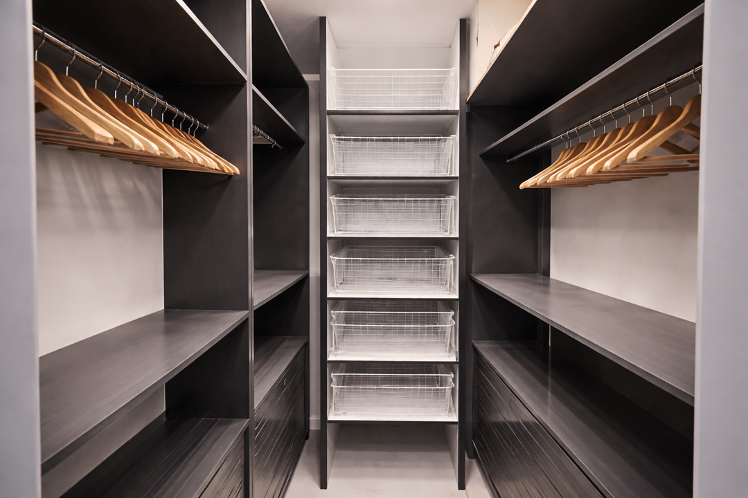 — большую гардеробную с вертикальной и горизонтальной системой загрузки.