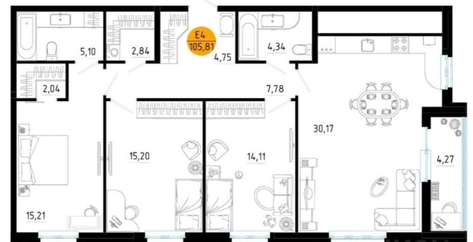 Особенности квартиры:Дизайнерский ремонт: В квартире выполнен дорогой, высококачественный ремонт с использованием премиальных материалов.Мебель на заказ: Вся мебель изготавливалась индивидуально, что позволило максимально эффективно использовать пространство и создать уникальный интерьер.Функциональная планировка: Три изолированные комнаты и просторная кухня-гостиная формата "Евро-4" идеально подходят для большой семьи.Удобства: Два полностью оборудованных санузла и две вместительная гардеробная комната обеспечат максимальный комфорт.Видовой этаж: 17-й этаж предлагает потрясающие панорамные виды, которые будут радовать вас каждый день.