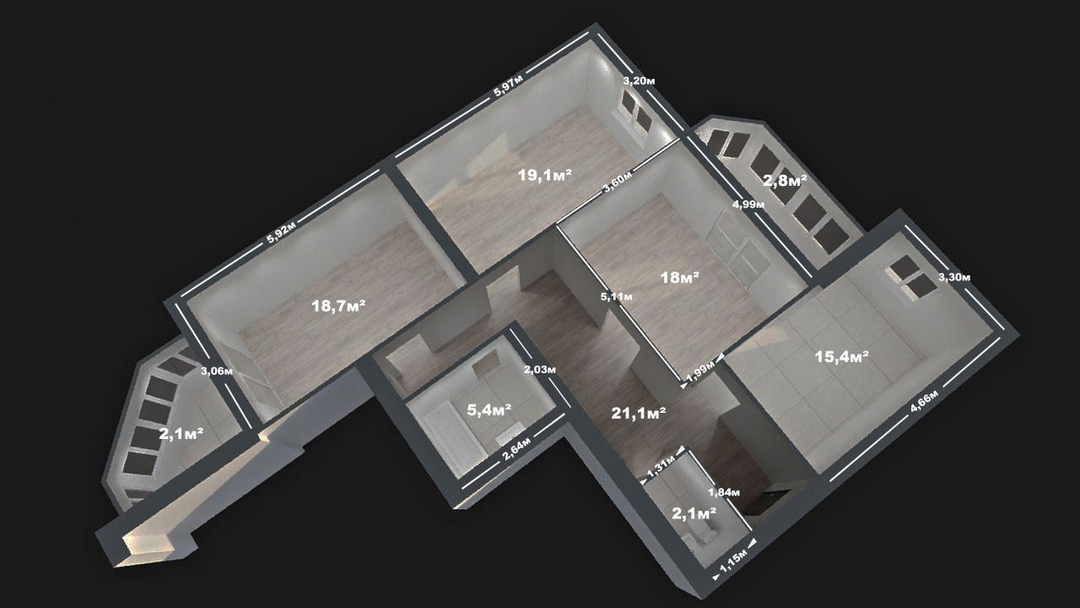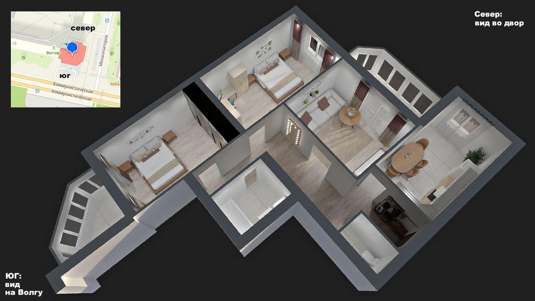 Мы сделали для вас ее в 3д формате. Убедитесь, что квартира имеет удобную конфигурацию, при этом существует множество вариантов ее еще более комфортного перепланирования за счет наличия не несущих стен.
