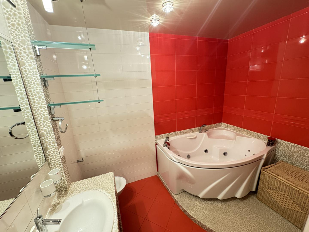 Санузел раздельный, керамогранит. В ванной установлена гидромассажная ванная джакузи и биде. А также Бойлер.