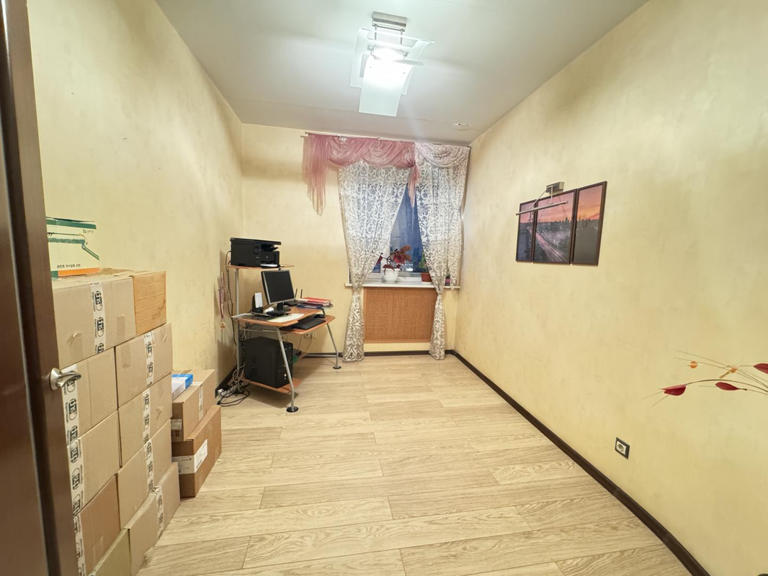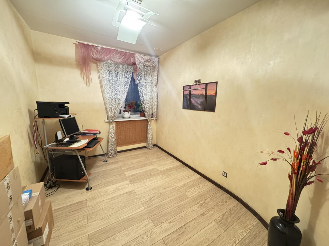 В кабинете на полу ламинат, остается компьютерный стол.