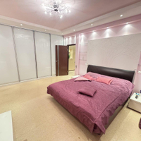 В спальной расположена двуспальная кровать, шкаф купе, а также комод бежевого цвета и плазменный телевизор. Есть выход на застекленную лоджию. Пробковый пол, что обеспечивает дополнительную звукоизоляцию и комфорт.