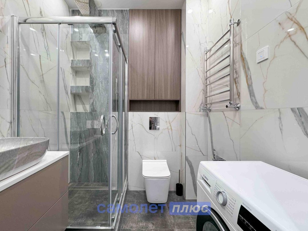 Евроремонт выполнен с использованием качественных материалов, что подчеркивает внимание к деталям и создает атмосферу уюта и элегантности.