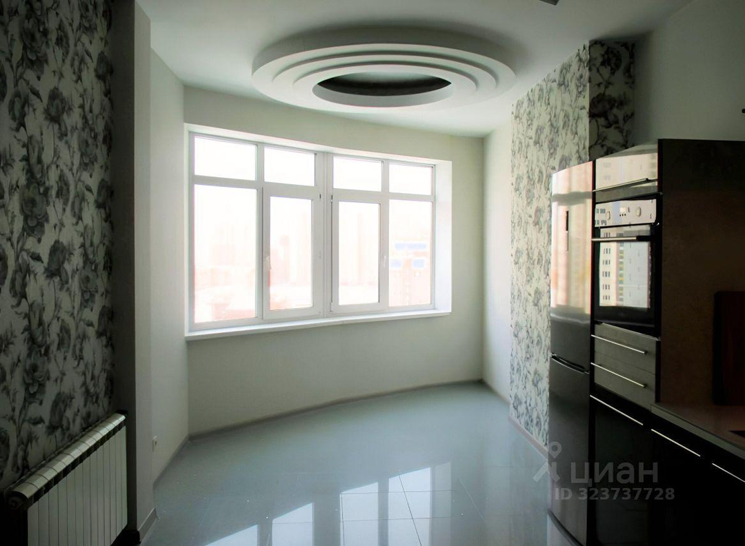 В квартире: холл 6 м2 с зеркальным шкафом; зал 30 м2 ; две спальни - 14,8 м2 и 17 м2 ; кухня с панорамными окнами 19,5 м2 ; два полноценных сан/узла - 4,2 и 6,7 м2 ; гардеробная 9 м2 ; балкон 8,5 м2. Высота потолков в квартире 3 м.