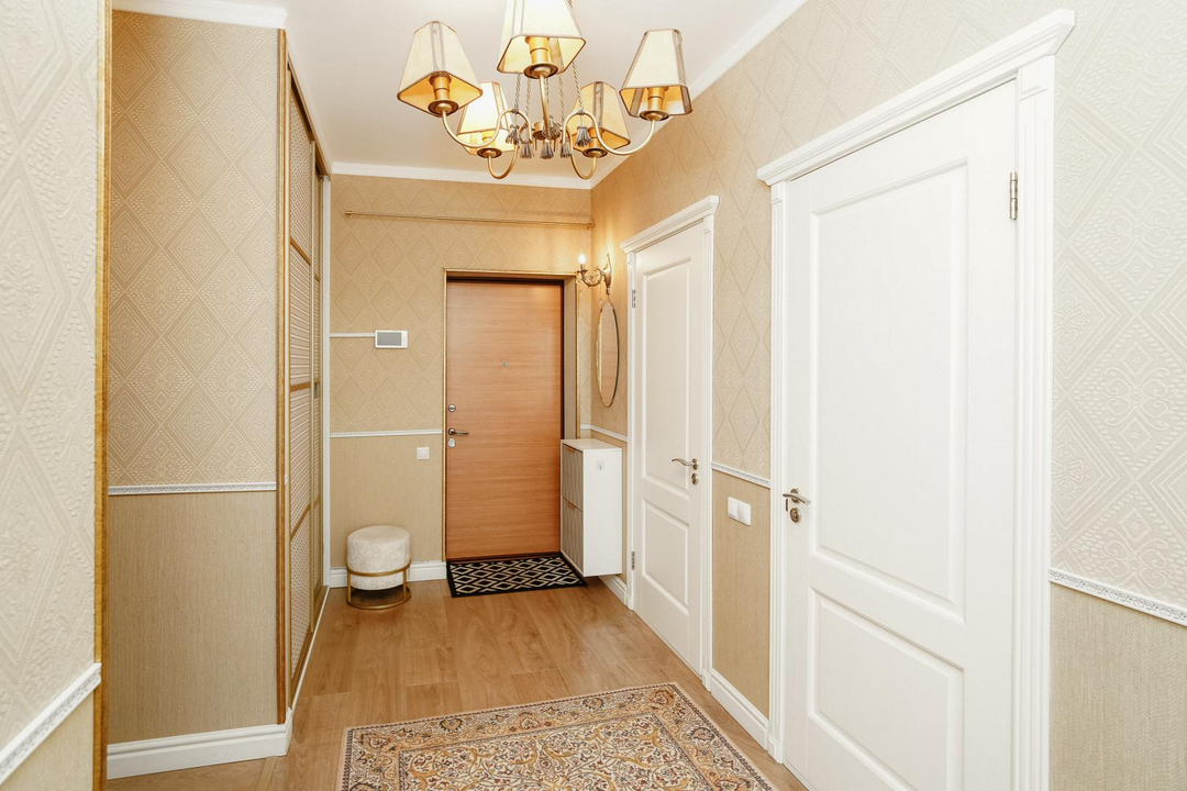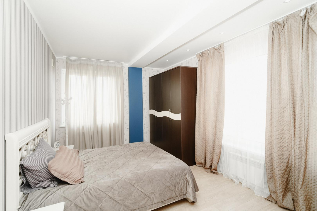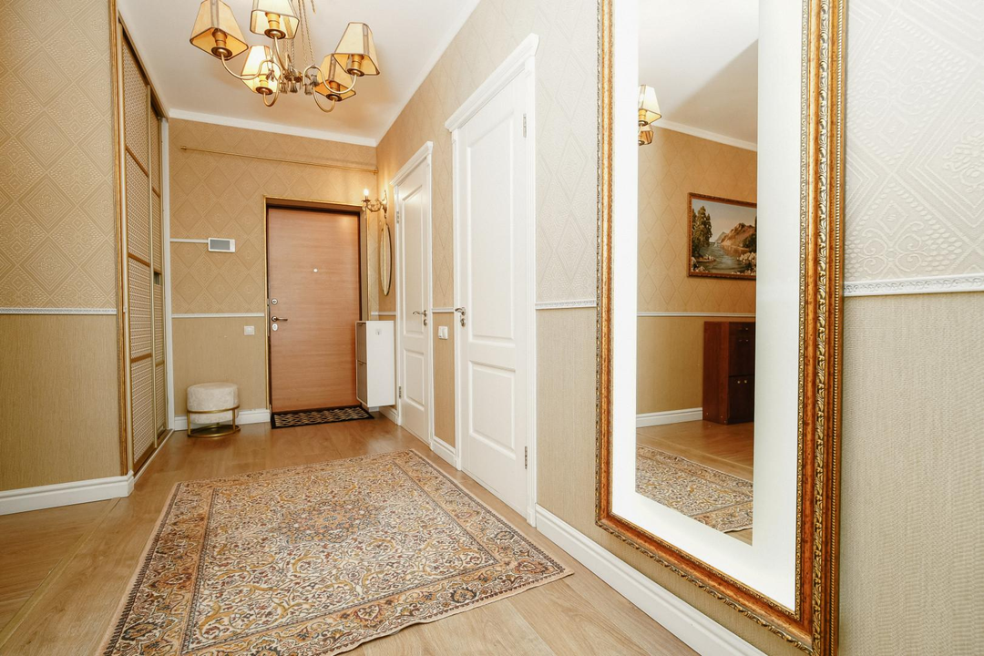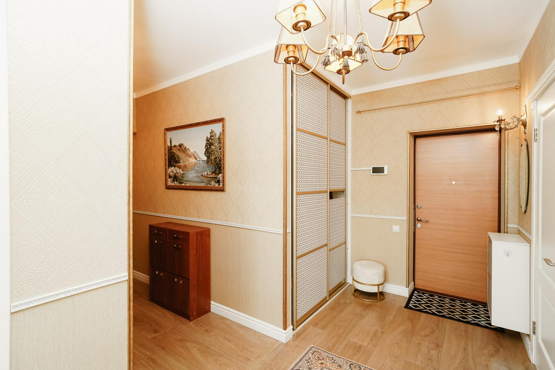 В квартире удобная планировка: 2 спальни, кухня-гостиная, 2 санузла, гардеробная, кладовая и лоджия.