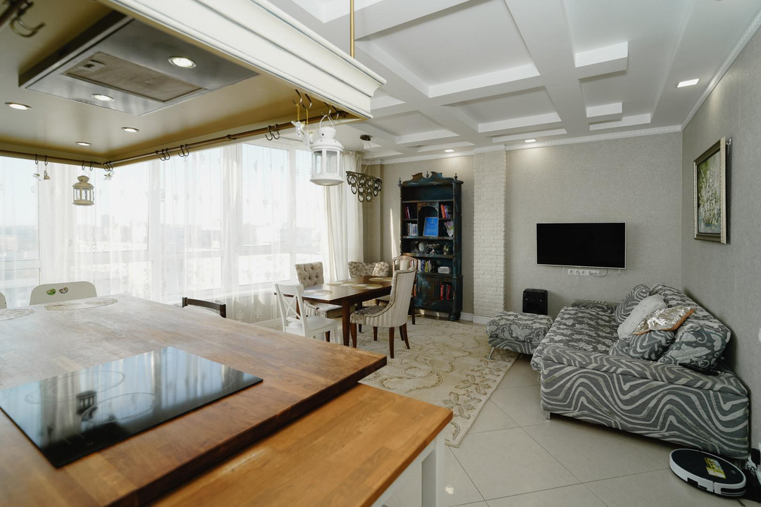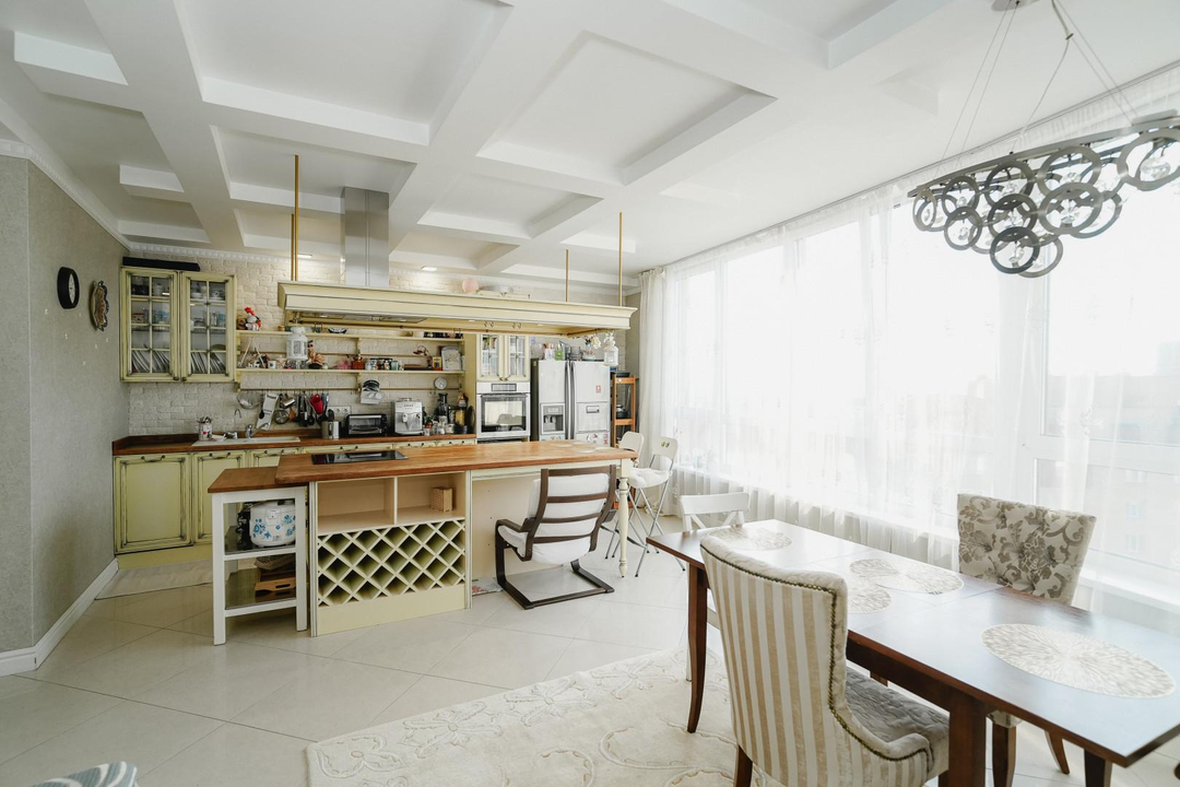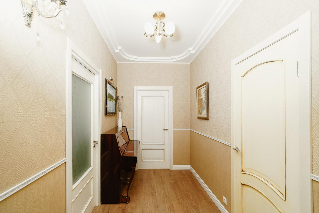 Квартира расположена на 11-м этаже 13-этажного кирпичного дома. Высота потолков - 3 метра.