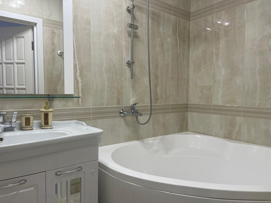 О КВАРТИРЕ:Просторная площадь: 110 кв.м.Функциональная планировка: Большая кухня-гостиная, две изолированные комнаты, два санузла, вместительная гардеробная с организованными местами для хранения.Новый ремонт: Выполнен всего год назад, в квартире никто не проживал. Полностью готова к Вашему счастливому переезду!Полностью укомплектована: Вся мебель, которую Вы видите на фото, остается. Вся необходимая бытовая техника также в наличии: кондиционеры, стиральная машина, холодильник, микроволновая печь, духовой шкаф, телевизор, посудомоечная машина, водонагреватель.Экономия на коммунальных услугах: В доме проведен газ, что значительно снижает Ваши ежемесячные расходы.