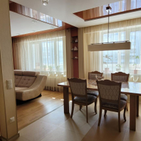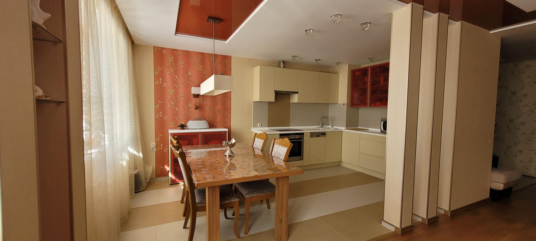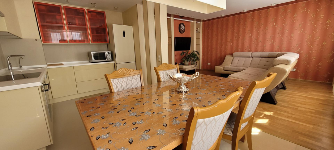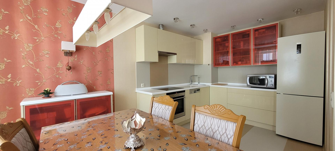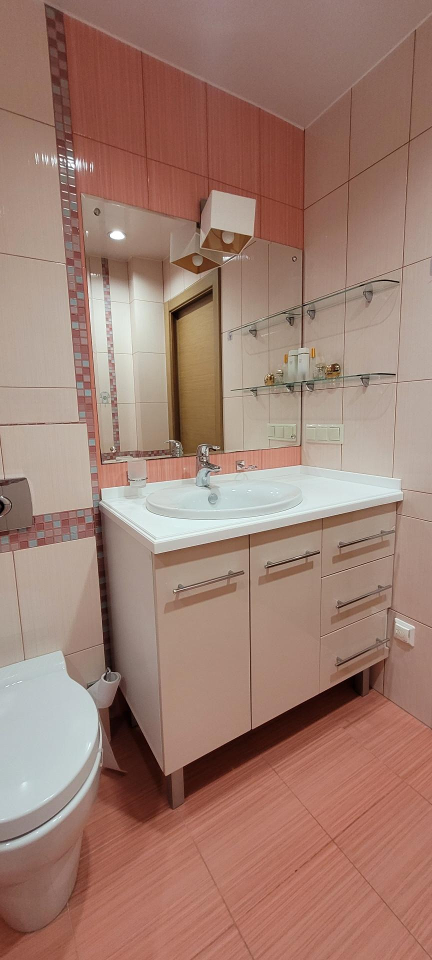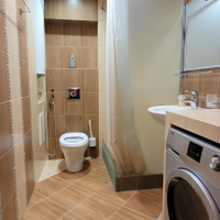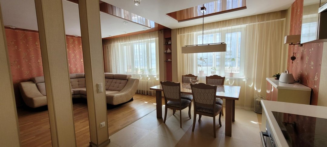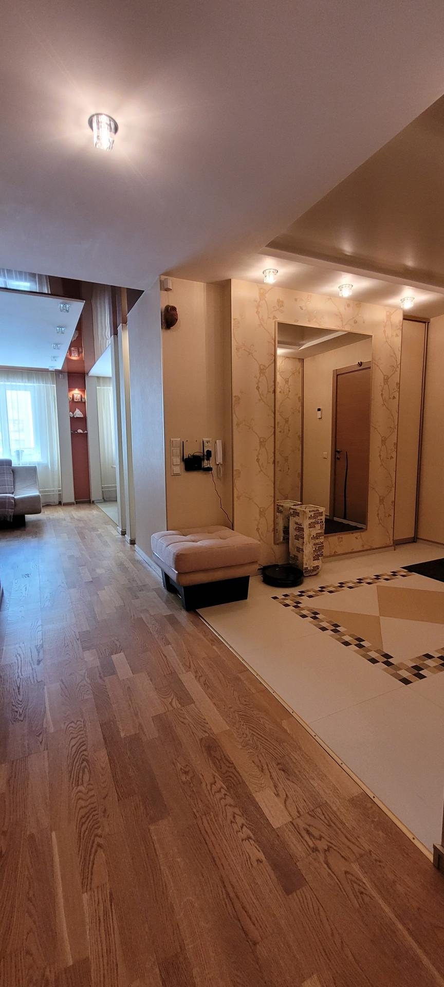 КВАРТИРА: готова к проживанию, мебелированная с бытовой техникой. Две лоджии, два сан. узла: с ванной и душевой кабиной. пластиковые стеклопакеты, теплые полы в сан.узлах, коридоре, кухне.