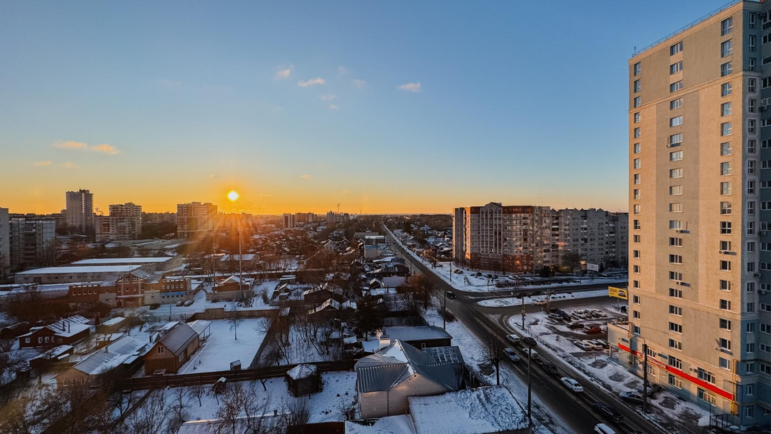Квартира расположена на 11-ом этаже, где открываются шикарные виды города. Все восходы и хакаты ваши)