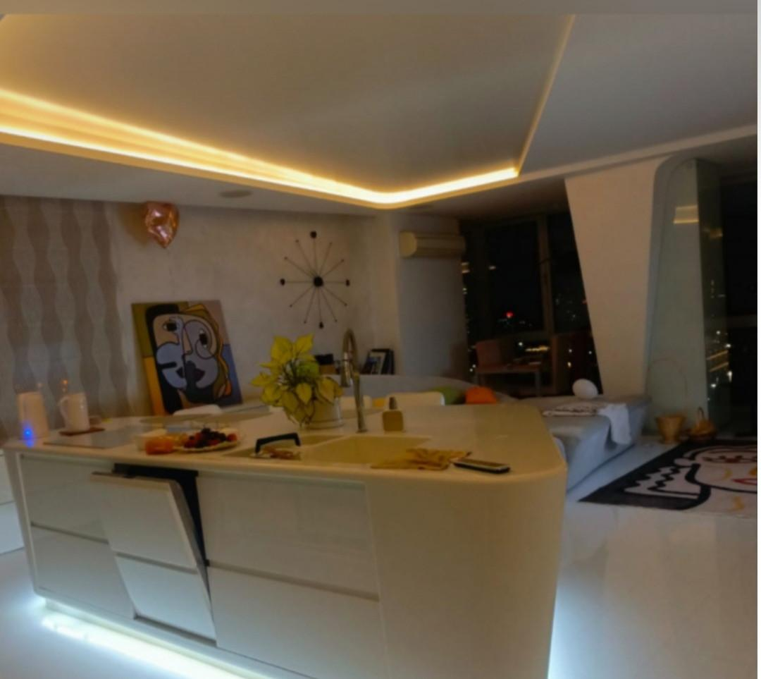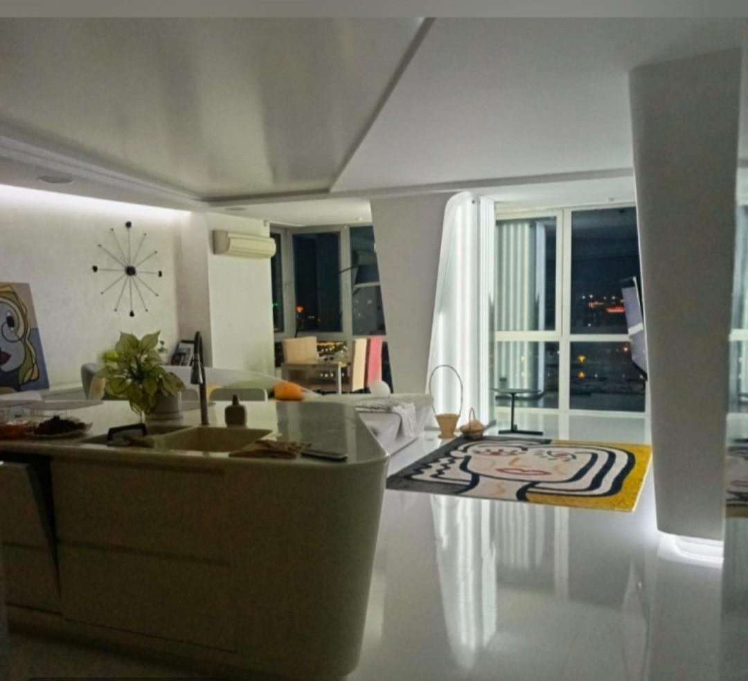Потрясающий вид из панорамных окон квартиры в вечернее время не оставит вас равнодушными (особенно во время празднования Дня города и в период Новогодней и Рождественской ночи).