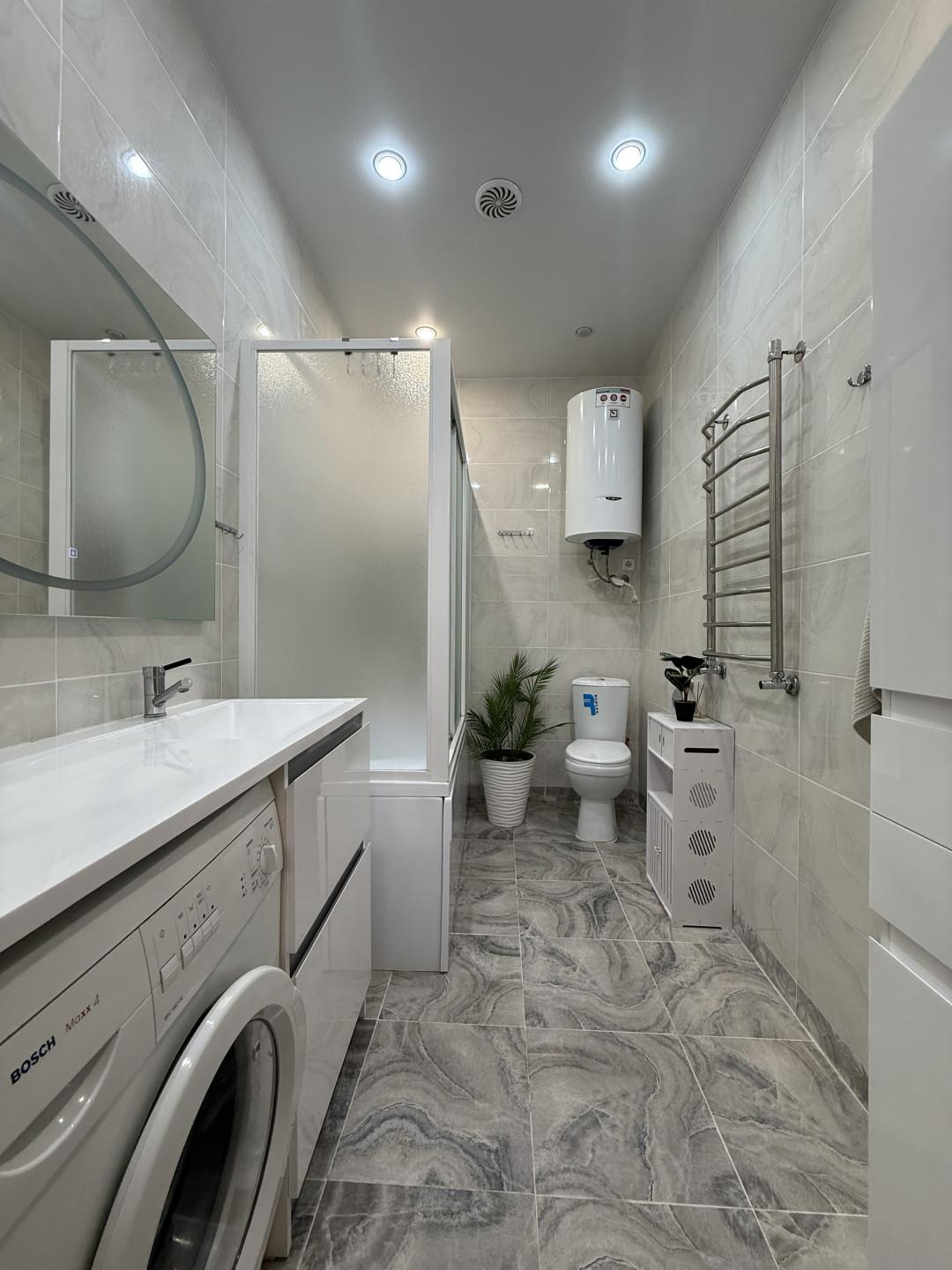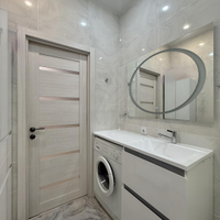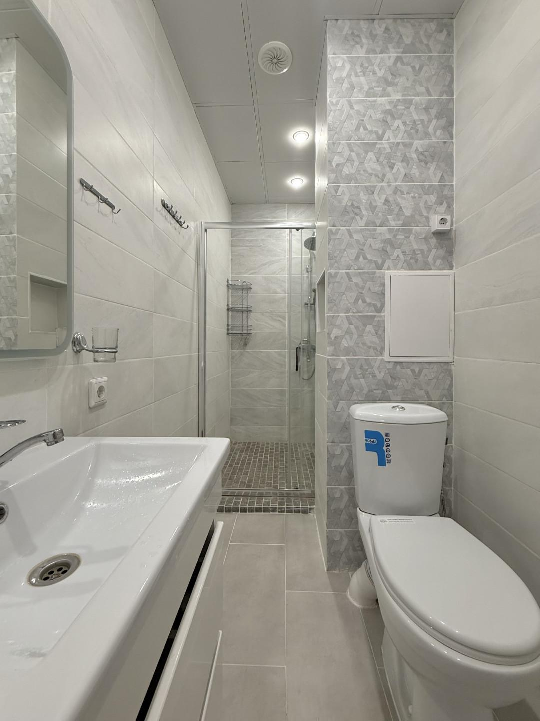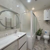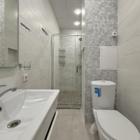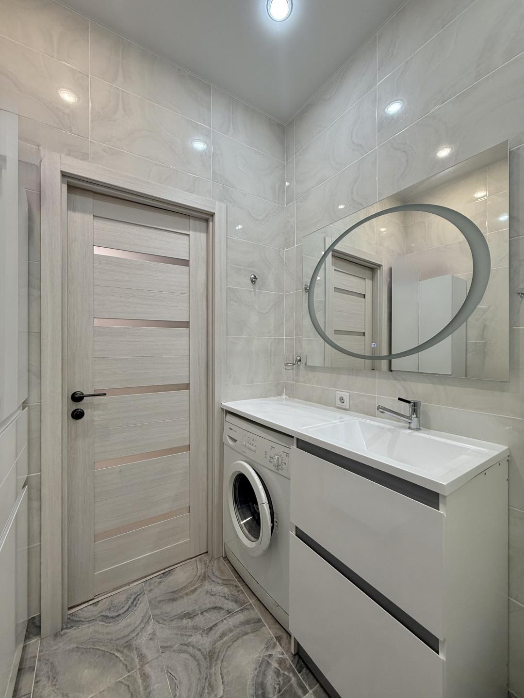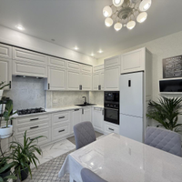 Качество ремонта вызывает восхищение. Выполненный евроремонт продуман до мелочей: установлены пластиковые окна, натяжные потолки, обновленная электрика и выровненные стены, оклеенные дорогими обоями. Санузлы отделаны современным кафелем, а на полу в комнатах и кухне уложен качественный ламинат, в коридоре – керамогранит. Лоджия застеклена и утеплена с панорамным остеклением, а межкомнатные двери и входная металлическая дверь выполнены на высоком уровне.