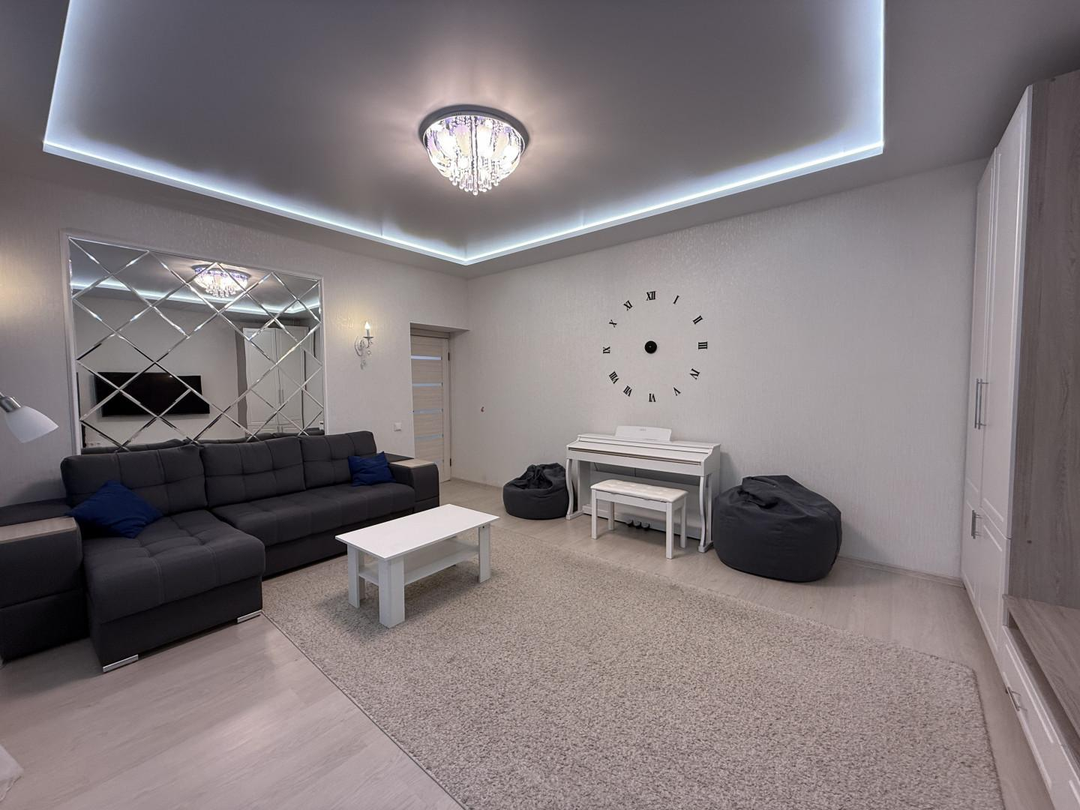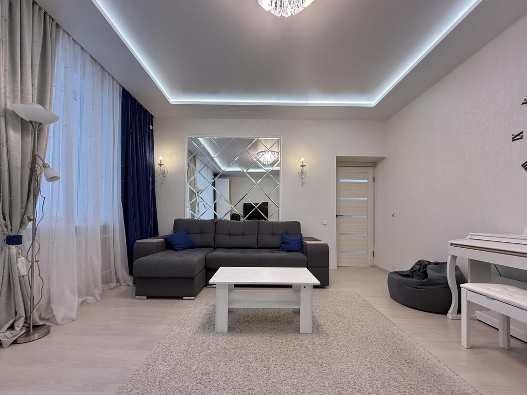 Общая площадь квартиры составляет 113.5 кв.м,+ дополнительно имеется просторная лоджия площадью 7 кв.м, где можно наслаждаться утренним кофе или вечерним отдыхом.