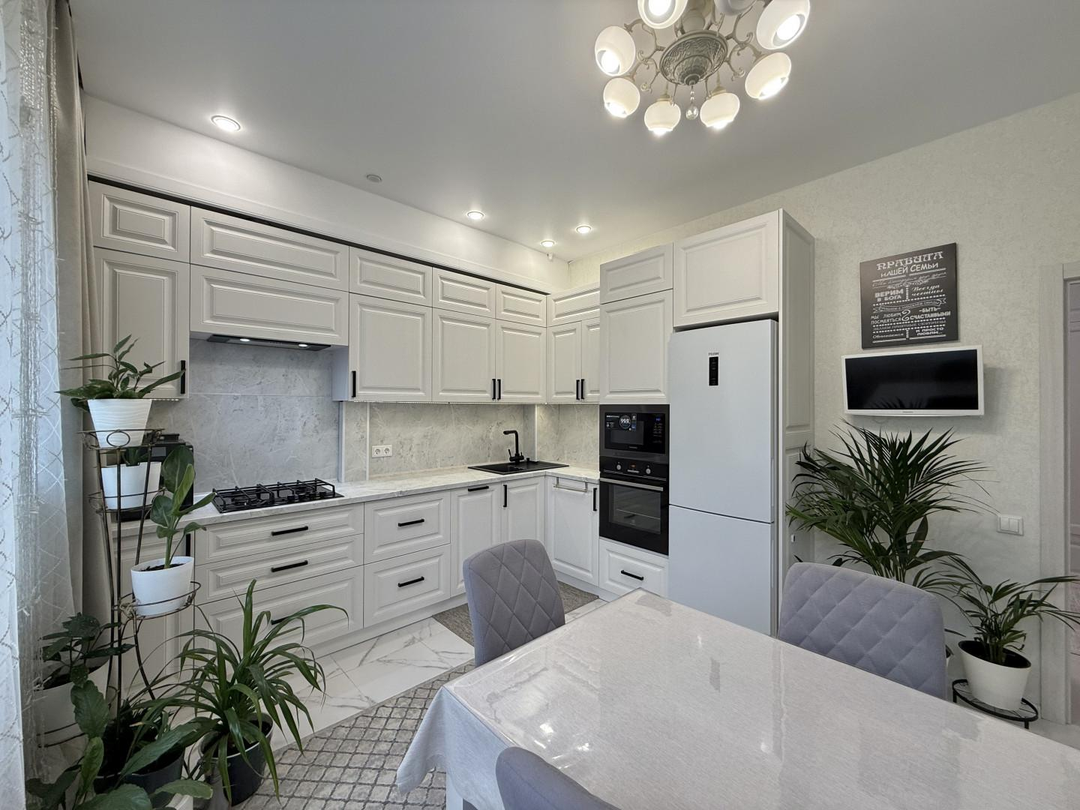 В подарок новым владельцам остается: кухонный гарнитур, мебель, техника.