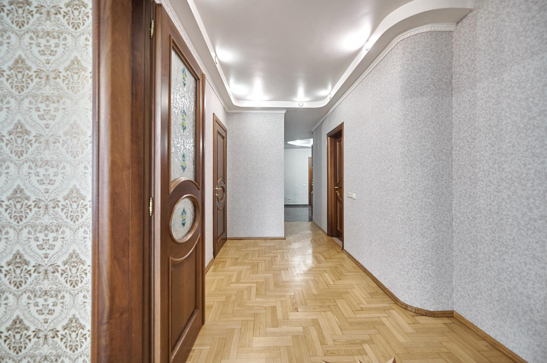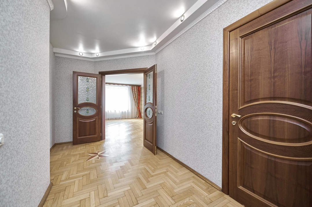 Квартира выполнена в стиле неоклассики в тёплой уютной гамме.