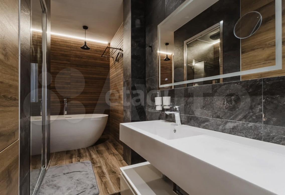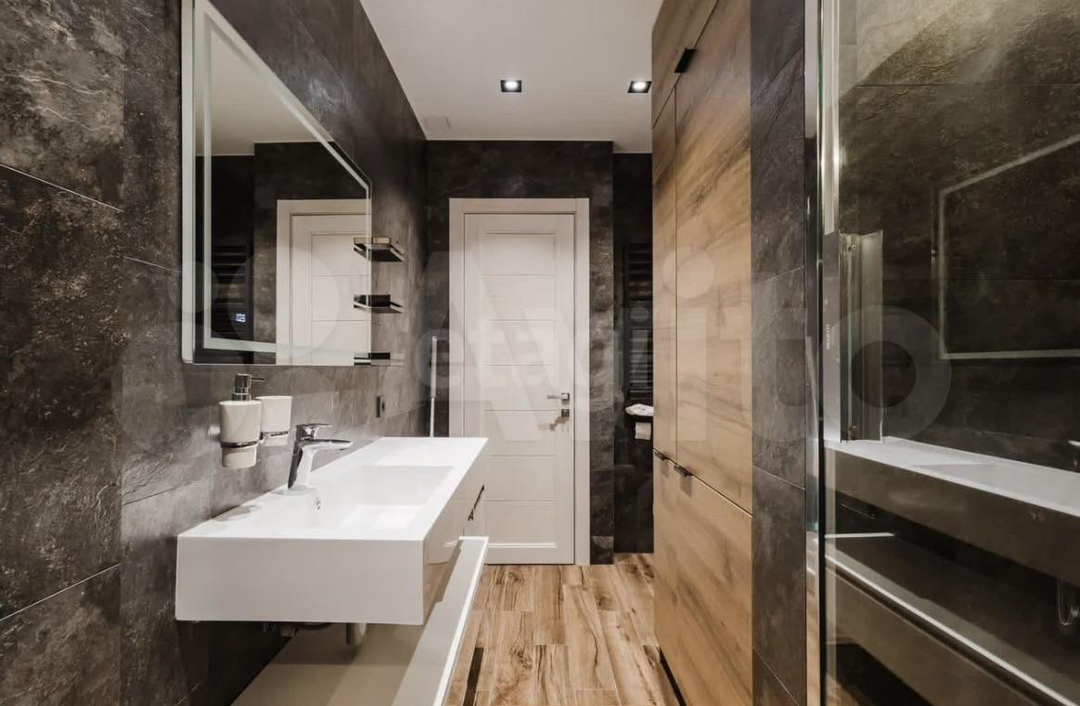 • Ванная комната (15 м²) с окном, сантехника GROHE и ванна из искусственного мрамора. Квартира полностью укомплектована мебелью и техникой для комфортного проживания!