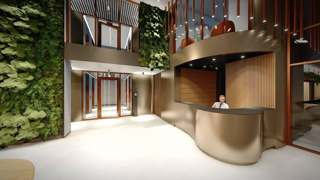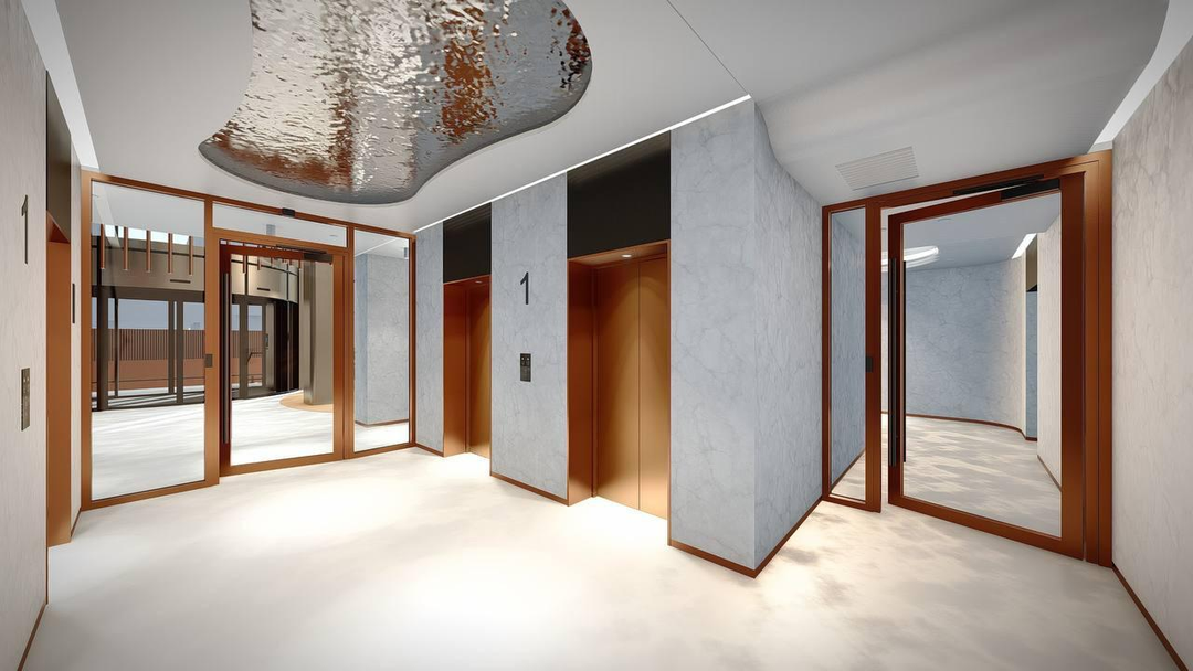 Заходя внутрь, попадаешь в просторное лобби в стиле ар-деко. Гости могут подождать в уютных креслах или подняться на нужный этаж на бесшумном скоростном лифте. Также внутри дома свой фитнес-центр. В распоряжении просторный зал с качественным сервисом и панорамными окнами.
