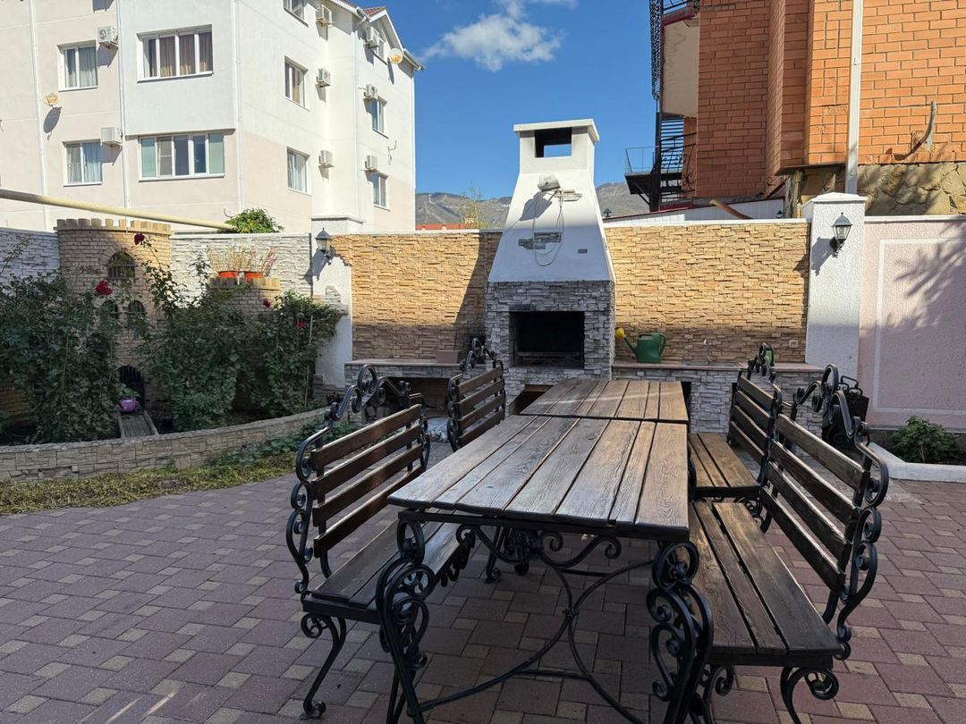 ️Приватная территория дома площадью 10 соток оборудована уютным местом для отдыха с мангалом, позволяя наслаждаться домашними посиделками и вечерним отдыхом с семьёй и друзьями.
