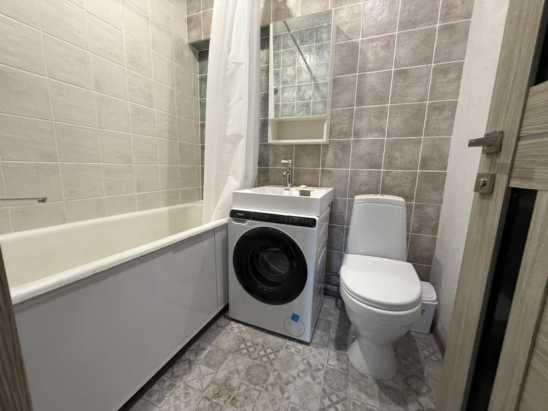 Ванная комната облицована новой керамической плиткой, а система подогрева пола обеспечивает дополнительный комфорт в холодное время года.