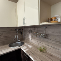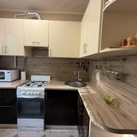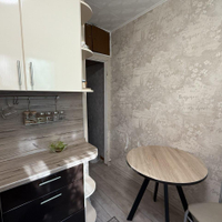 на кухне новый ремонт, новый кухонный гарнитур, на полу кафель, во всех комнатах натяжной потолок, окна ПВХ. Минус переклеить обои, так как поцарапал кот.
