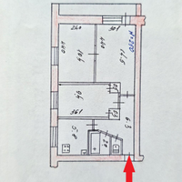 - жилая площадь – 34,3 квм (комнаты 14,5 квм, 10,4 квм и 9,4 соответственно), кухня – 5,8 квм;