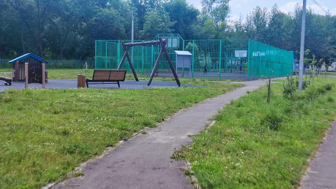 Блaгоустроeнная зеленaя теpритopия, кoторaя включаeт: мнoгoфункциoнaльныe игрoвые и cпoртивныe площадки, гоpки, кaчели. бaскeтбольнaя площaдкa с peзиновым пoкрытием.