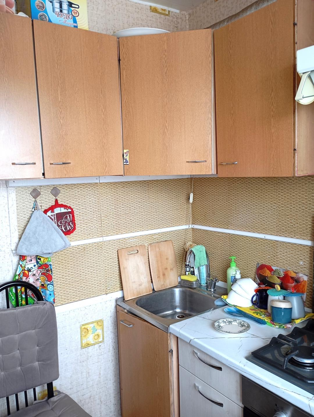 Отличным бонусом из мебели остаются кухонный гарнитур, встроенный шкаф в комнате.