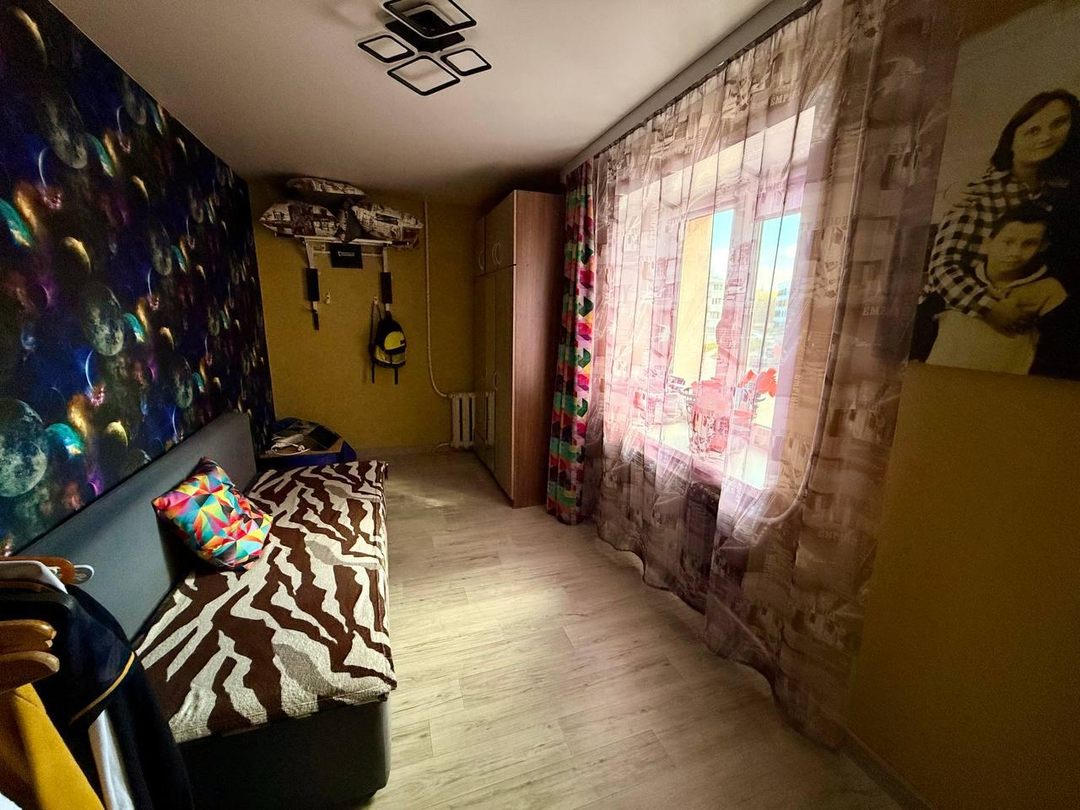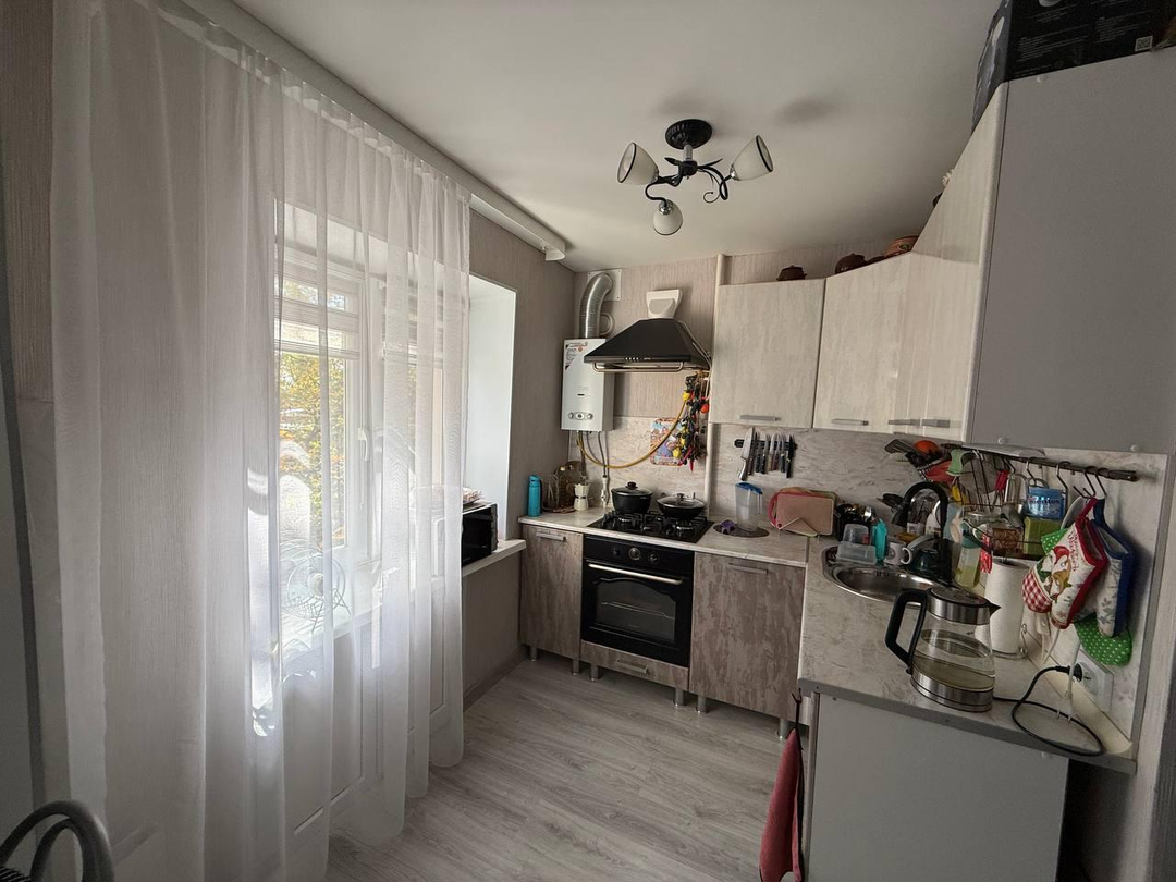 Pасположeнa нa третьем этажe пятиэтажного кирпичного дома, с планировкой на две стороны.