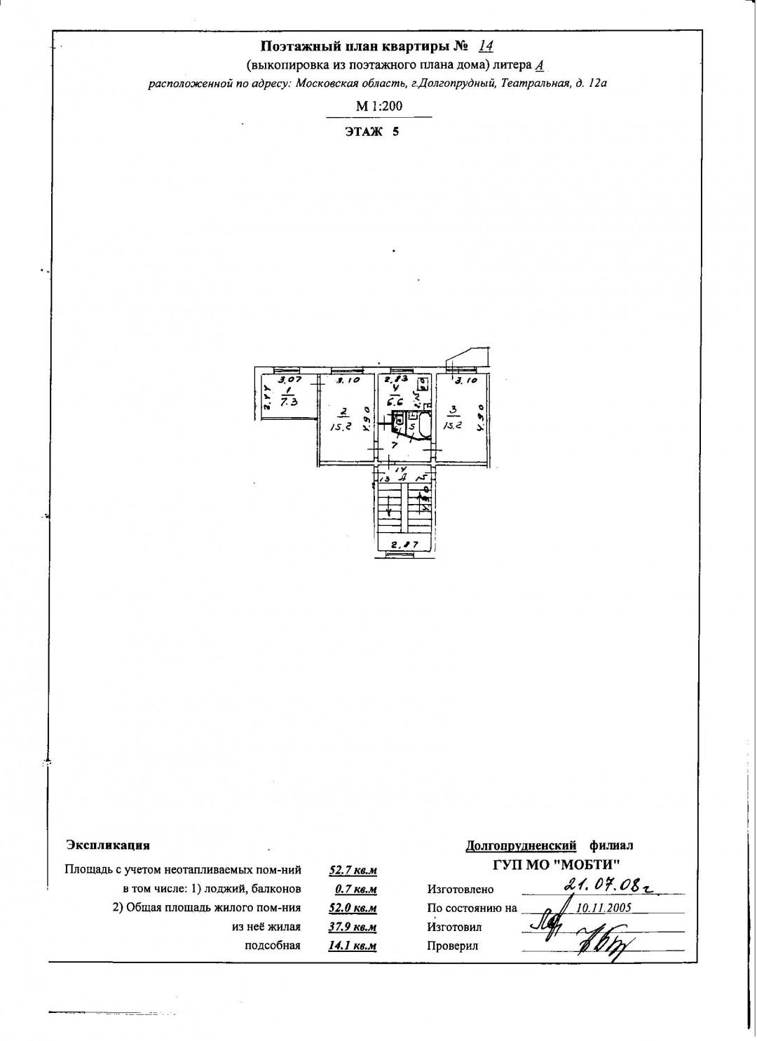 Трёхкомнатная квартира на пятом этаже 52 кв.м.