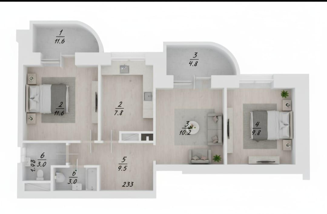 Просторная площадь позволит вам создать уютное семейное гнездо или реализовать смелые дизайнерские решения.