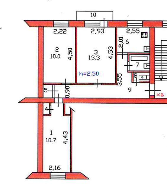 Жилая площадь: 34 кв.м. (10+13,3+10,7)