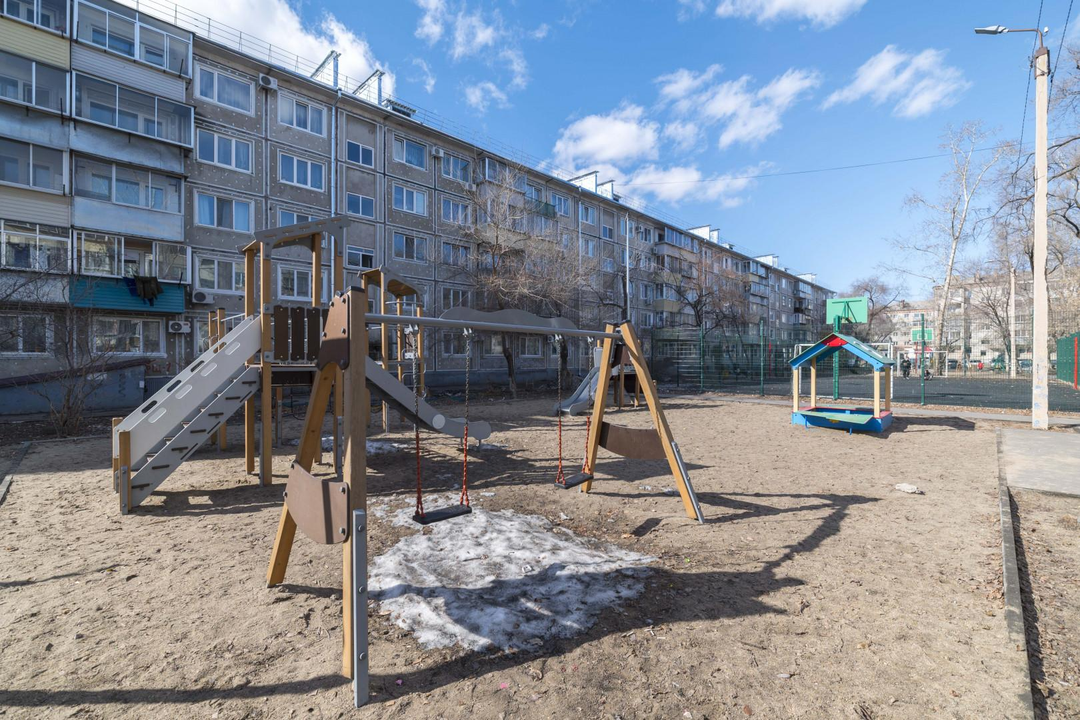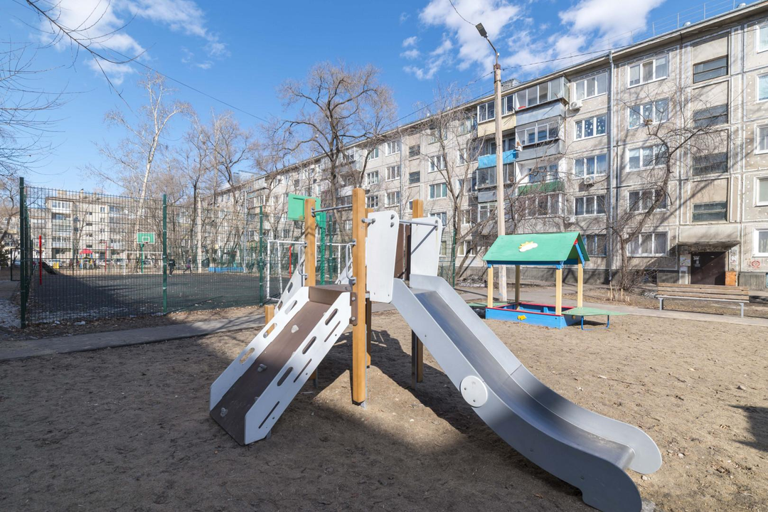 Дом расположен внутри квартала, что исключает шум и пыль. Во дворе новая детская площадка с искусственным покрытием. Подъезд чистый, никаких посторонних запахов. На площадке всего 4 квартиры.