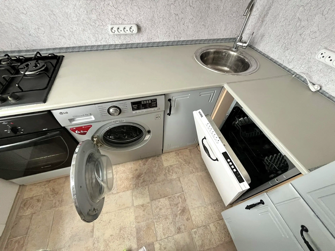 Встроенная посудомоечная машина и стиральная машина.