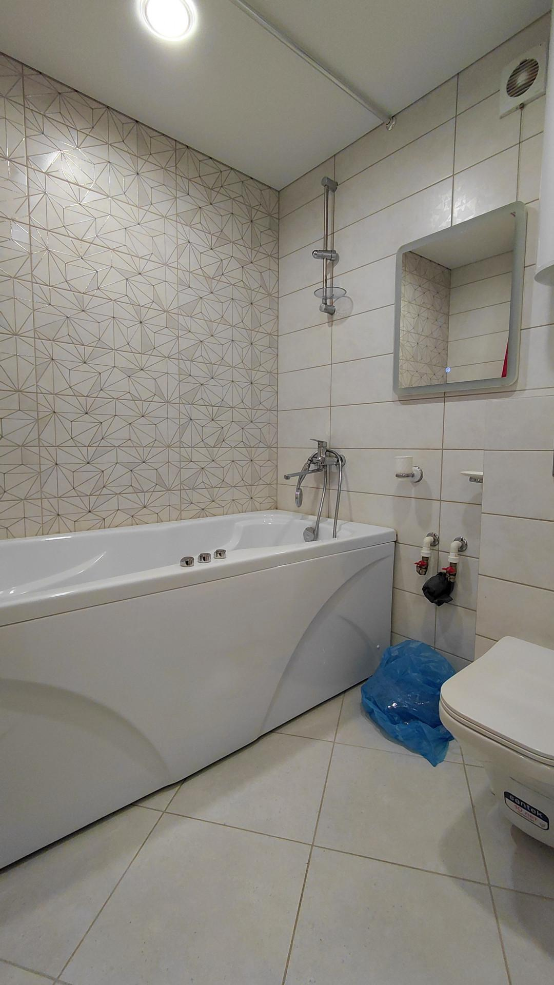 -Новая проводка, стены выровнены, стяжка пола, качественный ламинат, на кухне и в коридоре пол выложен керамогранитом, лоджии застеклены (пластиковые окна), натяжной потолок, совмещенный с/у в кафеле, водонагреватель, акриловая ванна с гидромассажем и подсветкой, система АКВАСТОП, новые пластиковые окна (штульповые), новые межкомнатные двери, независимая система вентиляции, на балконе тёплые полы, новые батареи.