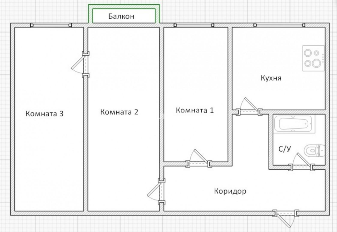 Квартира просторная, светлая. Одна комната отдельная, две смежные. Балкон.